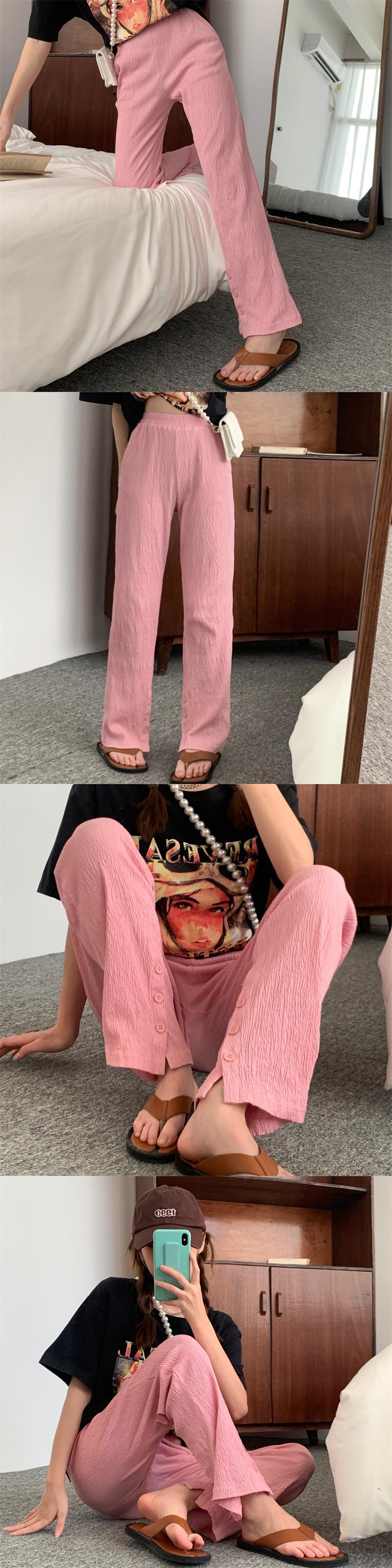 スリットカジュアルパンツ 夏服韓国ファッションNEW薄手プリーツハイウェストウェストルーズフィットワイドレッグ 夏物 ワイドパンツ スタイル ウエスト Studios52437890306 | pLegLad Studios