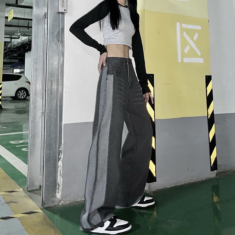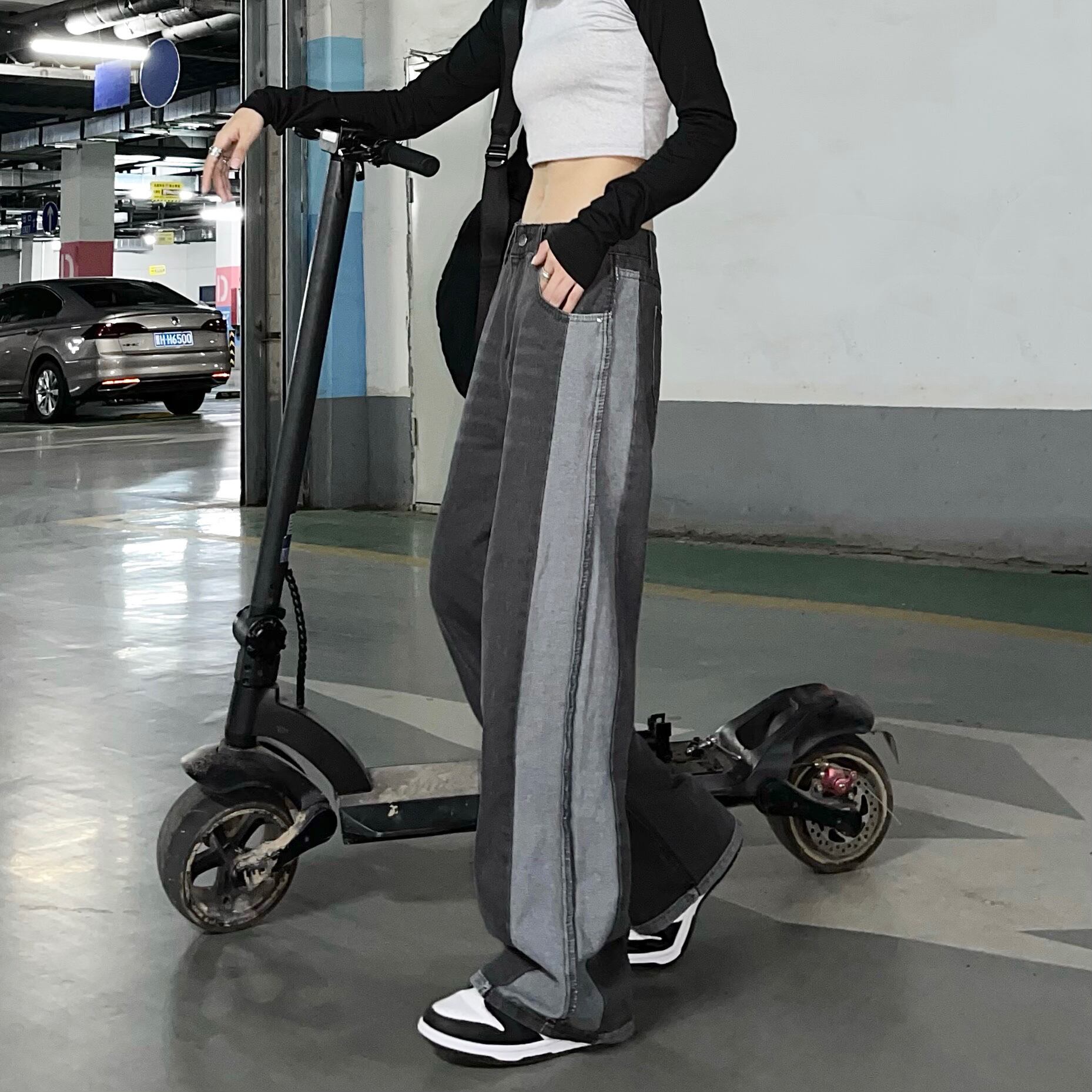 ジーンズ 韓国ファッションNEWスタンダードダークウェストルーズ薄手ワイドレッグパンツ レトロ ストリート ワイドパンツ ステッチ ウエスト Studios71802392639 | pLegLad Studios