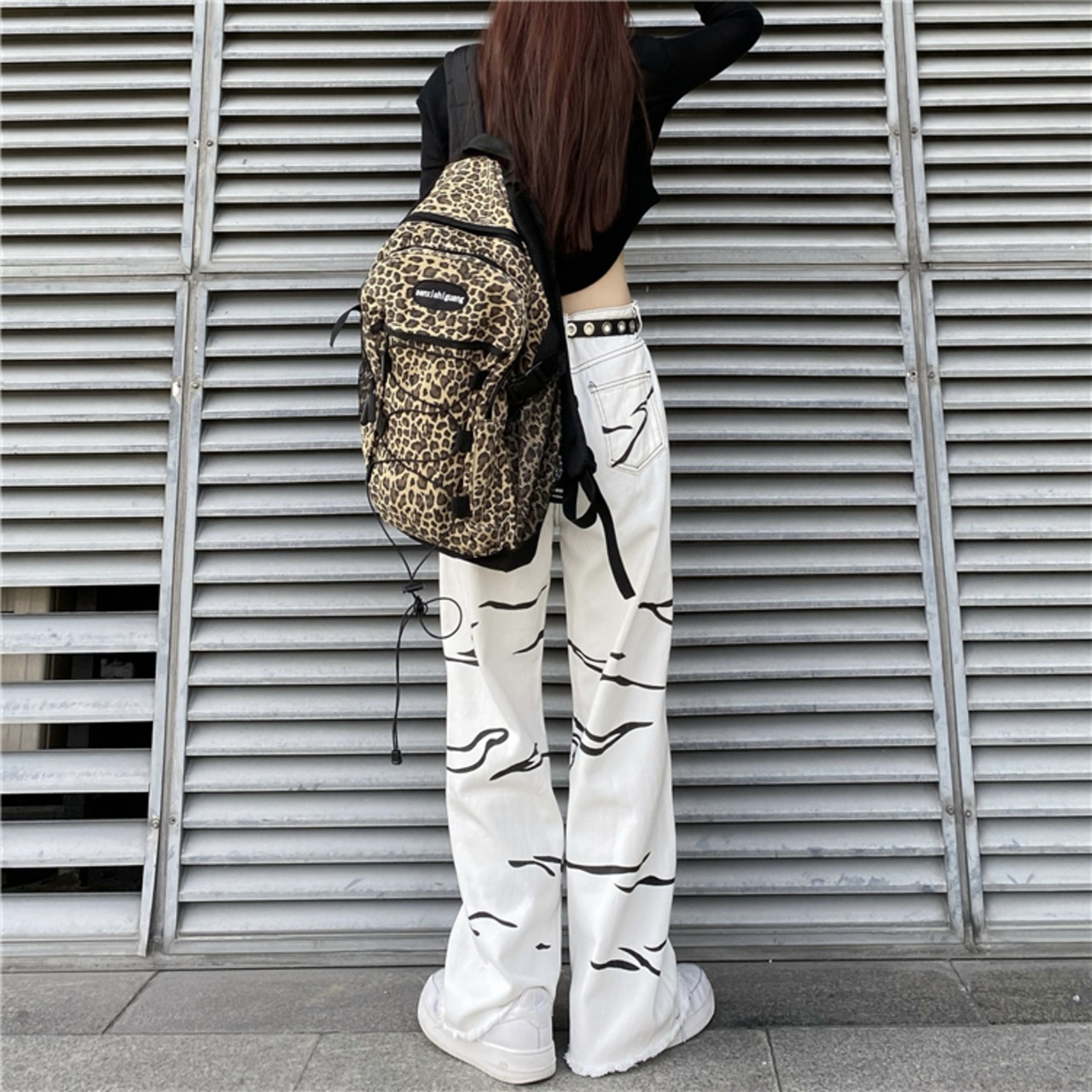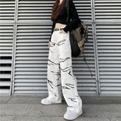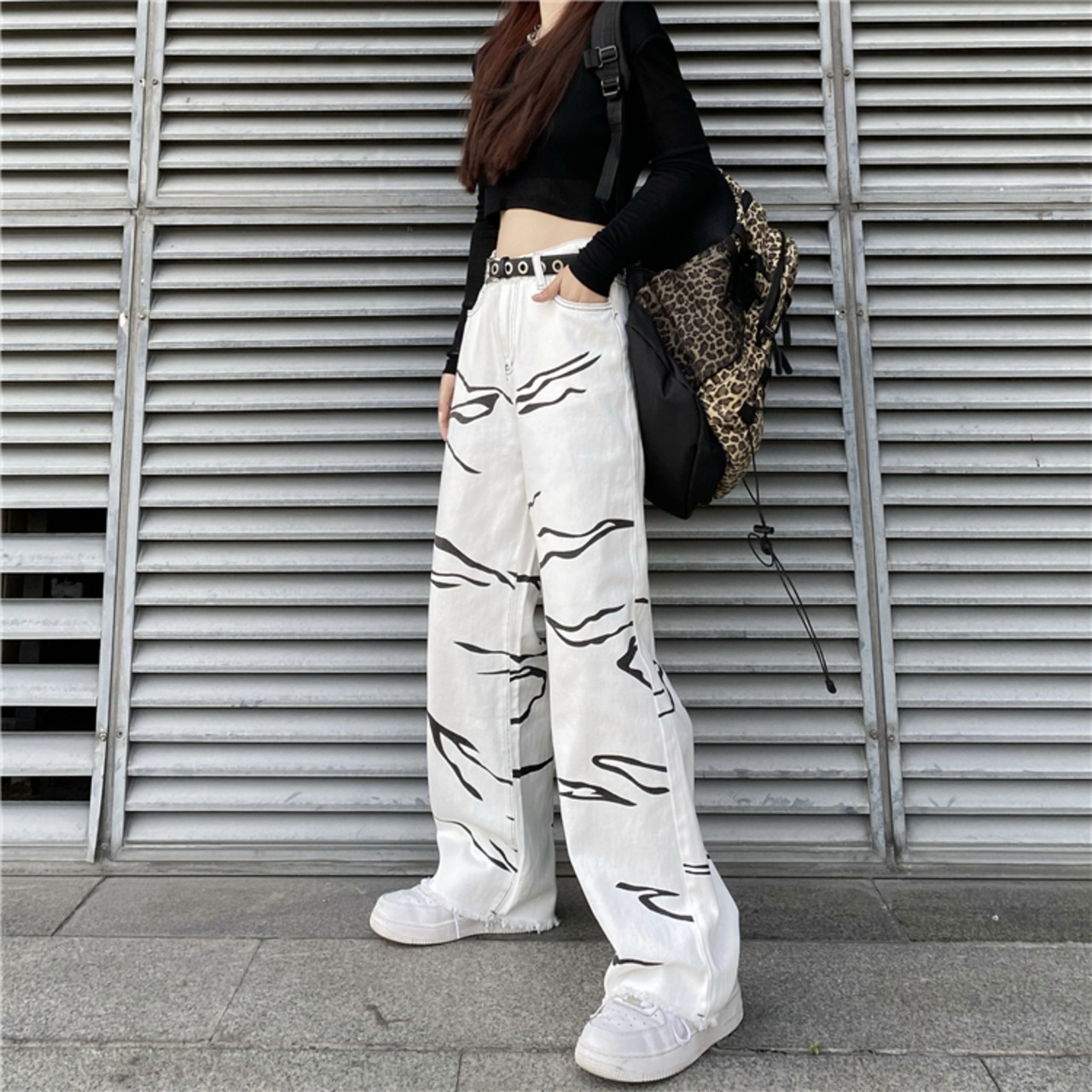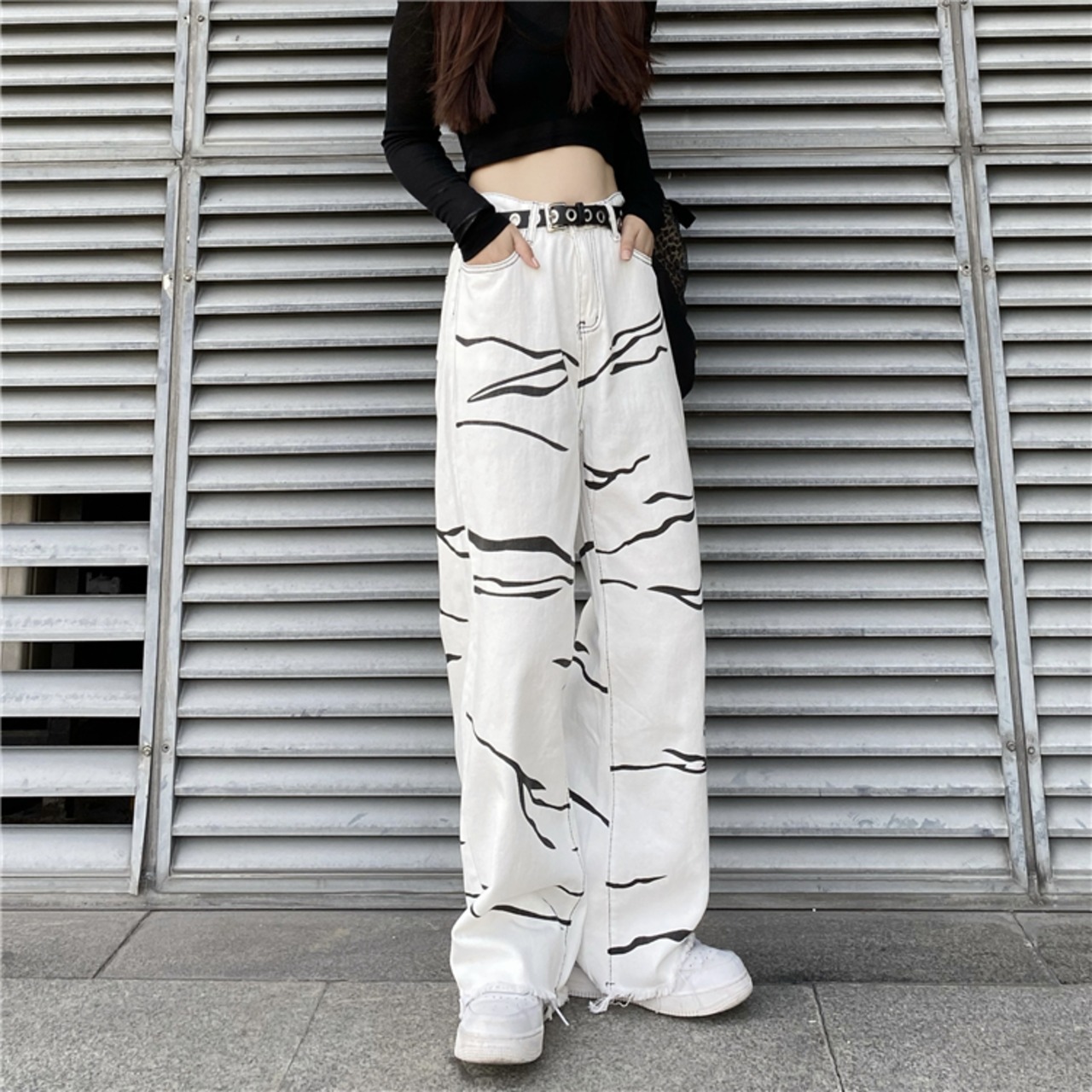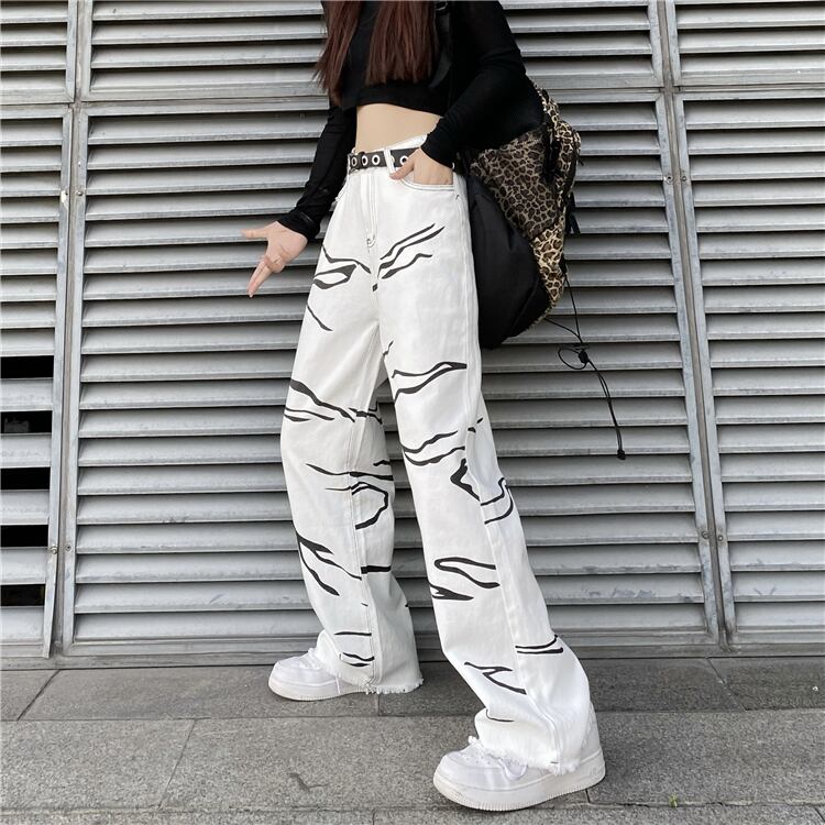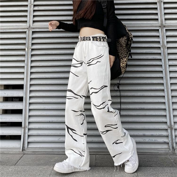パターンジーンズ レディース韓国ファッションNEWスタンダードルーズハイウェストウェストワイドレッグカジュアル レトロ ストリート ワイドパンツ スタイル ウエスト Studios93020468222 | pLegLad Studios