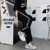 ギャザーカジュアルパンツ 秋物韓国ファッションスタイルNEWストライプルーズハイウェストウェストワイドレッグレギンス ストリート オータム ワイドパンツ ウエスト Studios75185419033 | pLegLad Studios