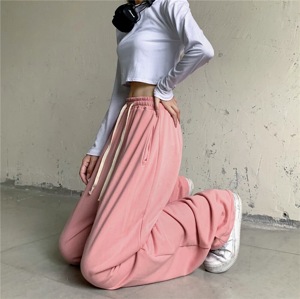 カジュアルパンツ レディース韓国ファッションNEWスタイルスタンダードベーシックハイウェストウェスト薄手ギャザーワイドレッグ レトロ 原宿 ワイドパンツ ウエスト Studios98194649725 | pLegLad Studios