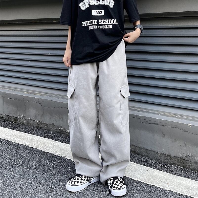 パンツレディース韓国ファッションNEWスタンダードルーズハイウェストウェスト薄手ワイドレッグパンツ レトロ ワイドパンツ ポケット多め マルチポケット スタイル ウエスト Studios64320045761 | pLegLad Studios