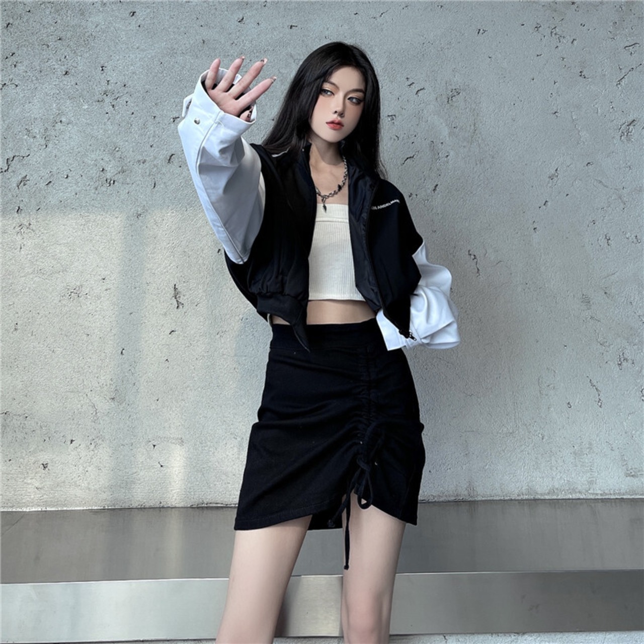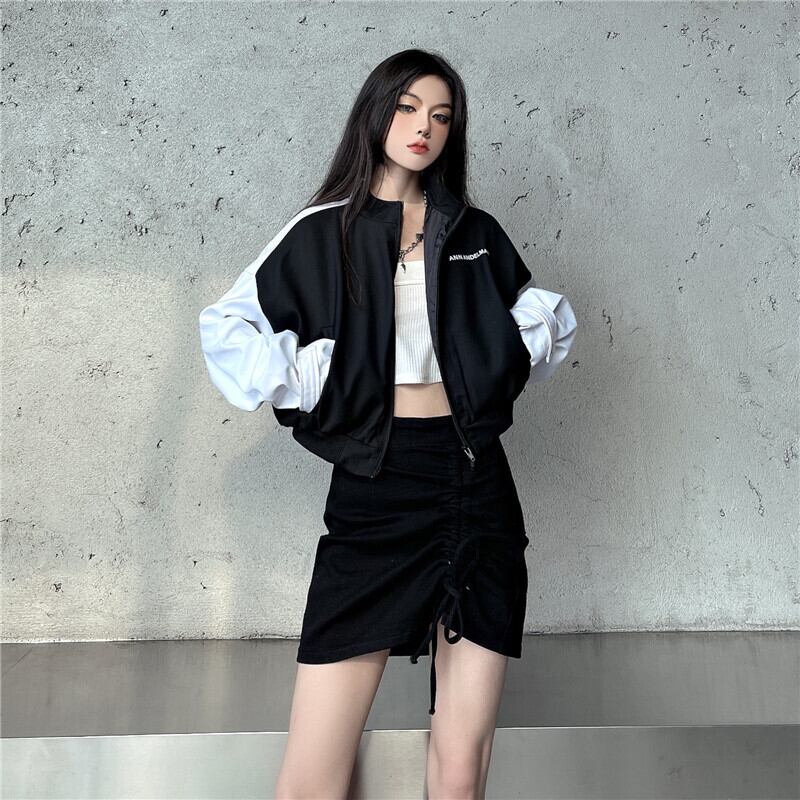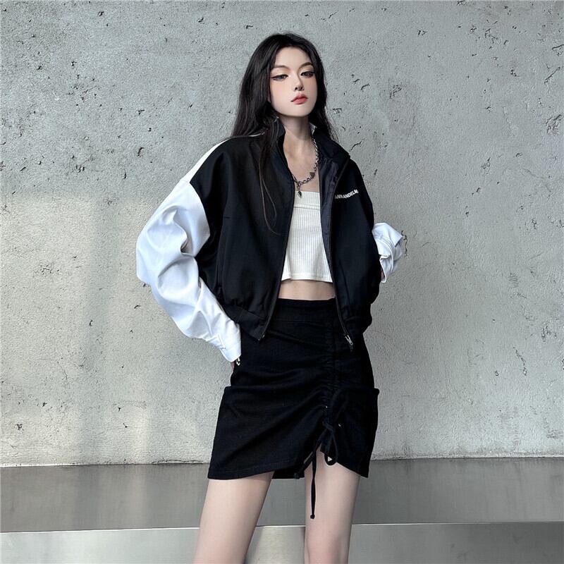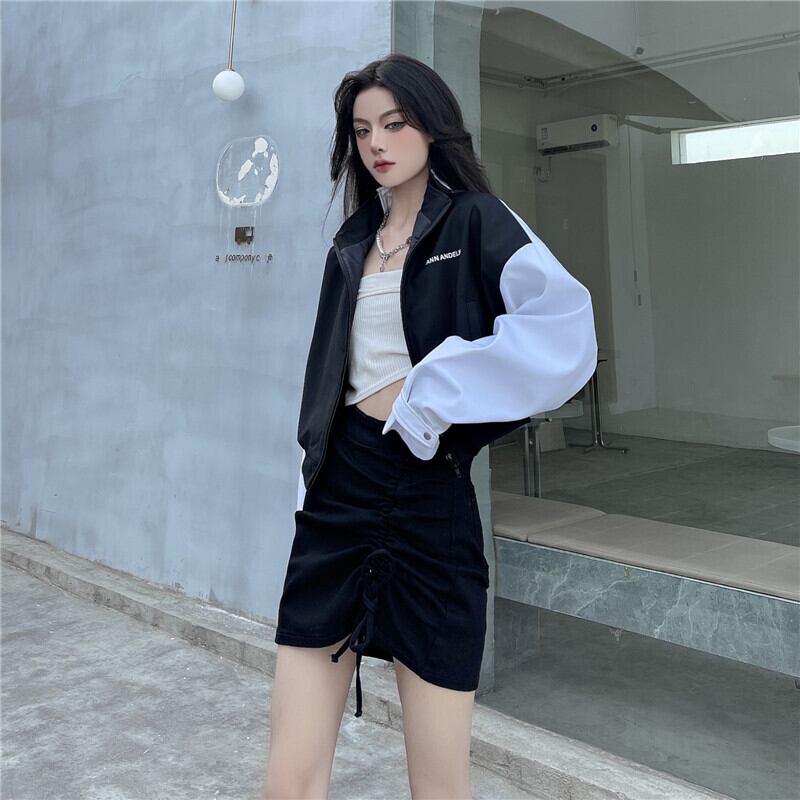 秋物カラーカジュアルジャケット レディース韓国ファッションNEWギャザーハイウェストウェストスカート オータム スタイル ウエスト コーデ モノクロ Studio16198253964 | pLegLad Studios