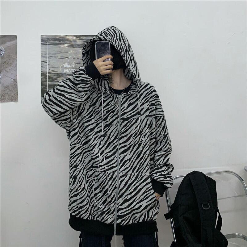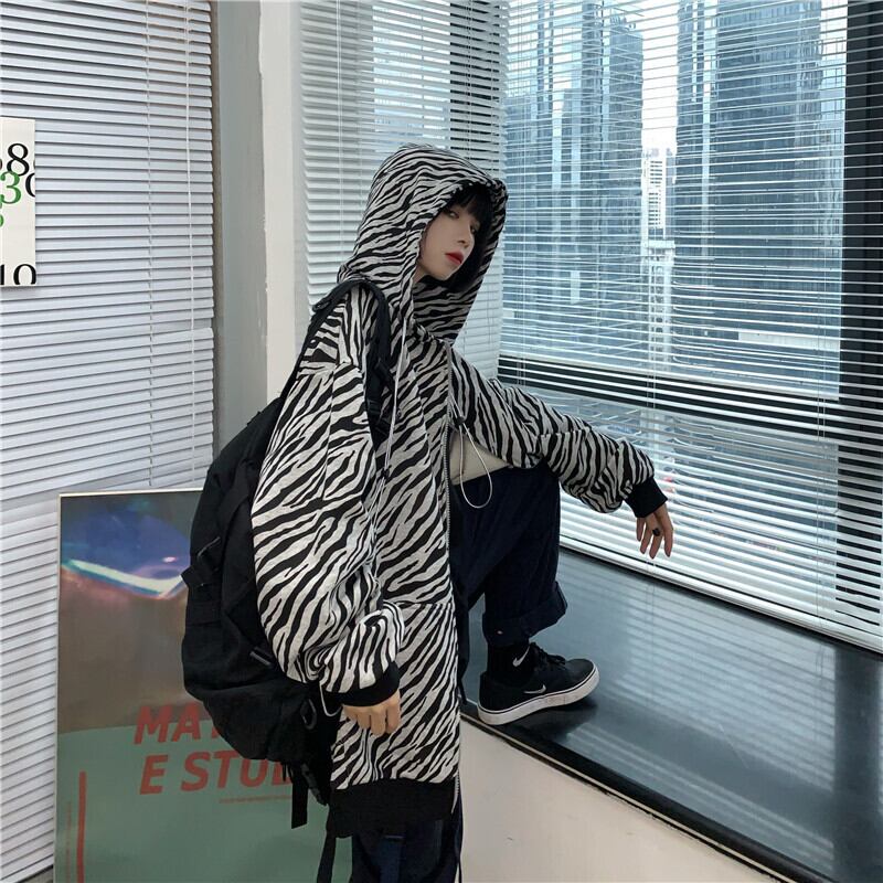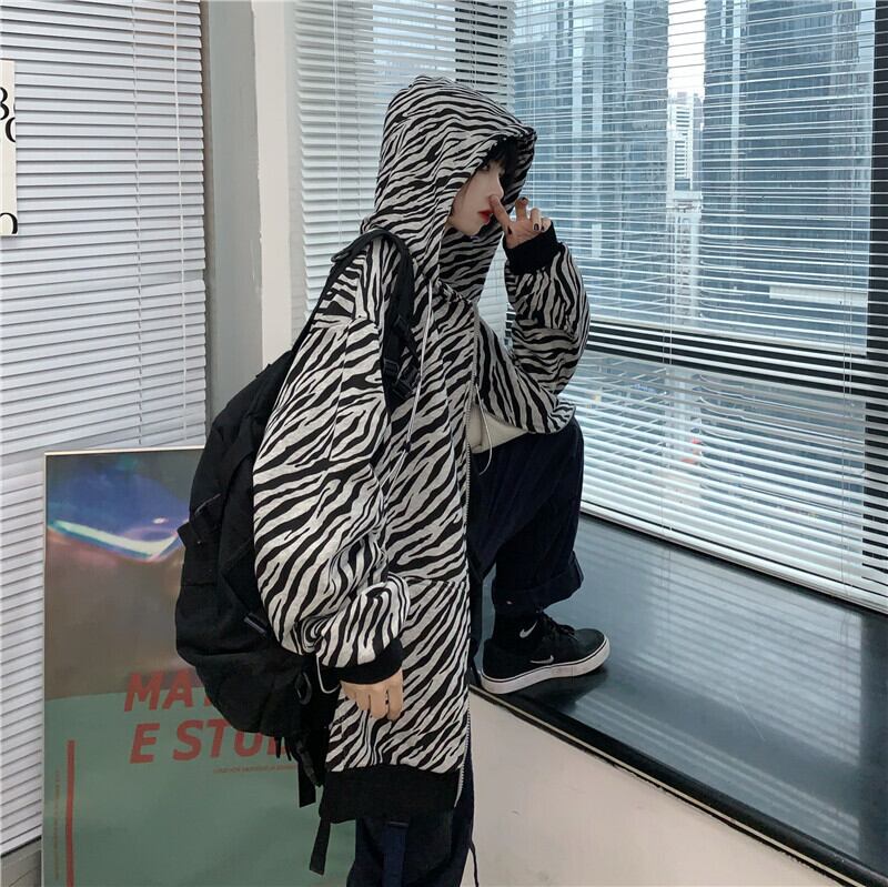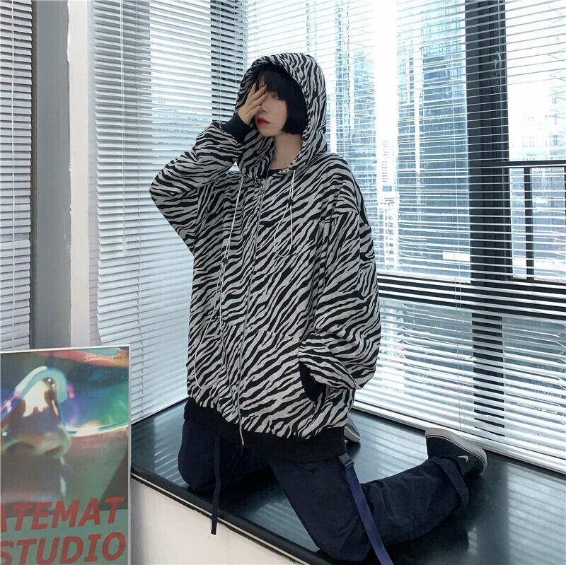 スタイルカーディガンフードセーター レディース秋物韓国ファッションNEWパターンジッパールーズジャケット 原宿 オータム コーデ モノクロ Studio70416130735 | pLegLad Studios
