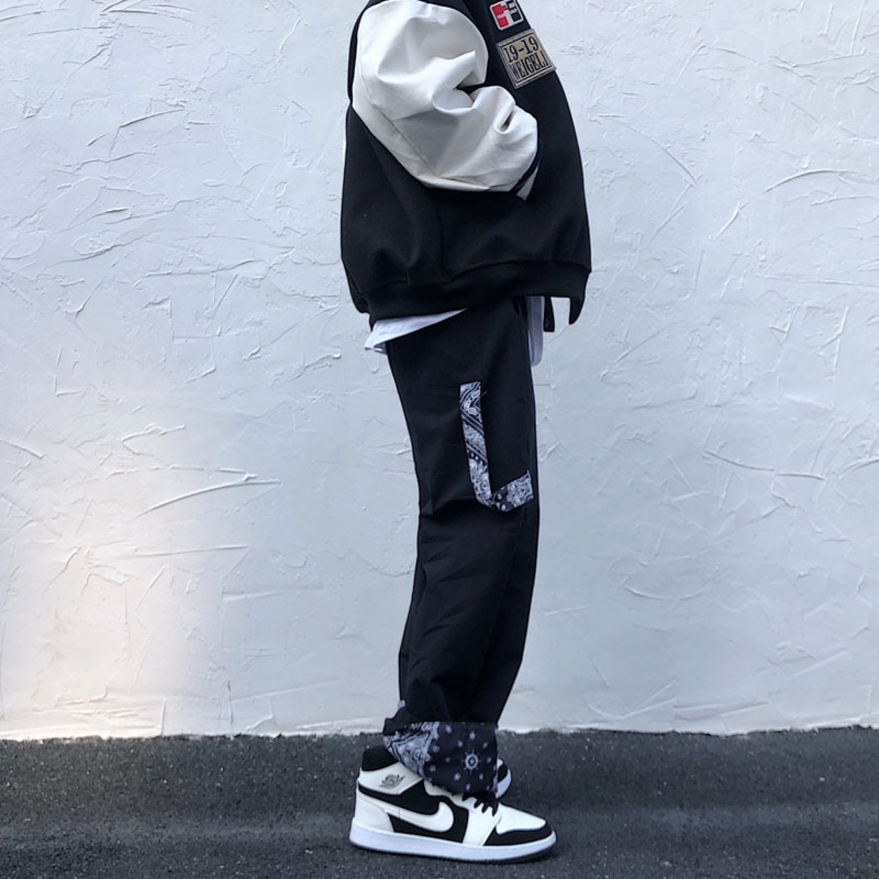 サイドジッパーパンツパンツ 秋物スタイル韓国ファッションFlowerデザイン ルーズ 原宿 オータム フラワーデザイン コーデ モノクロ Studio74562506503 | pLegLad Studios