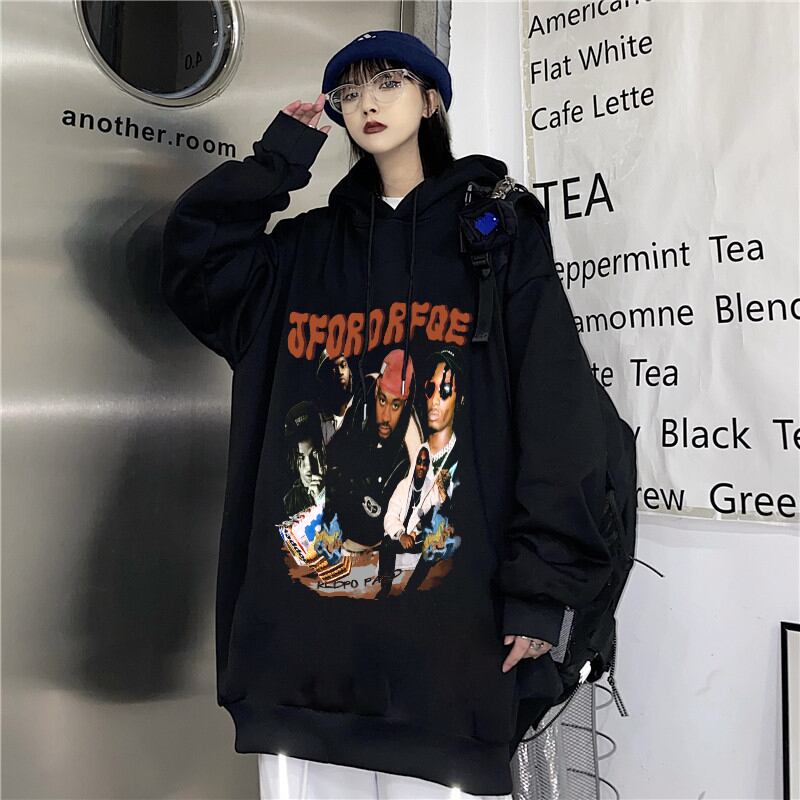 フードセーター レディース秋物韓国ファッションNEWプリントルーズトップス ストリート オータム ボーイズ スタイル コーデ モノクロ Studio60950171768 | pLegLad Studios