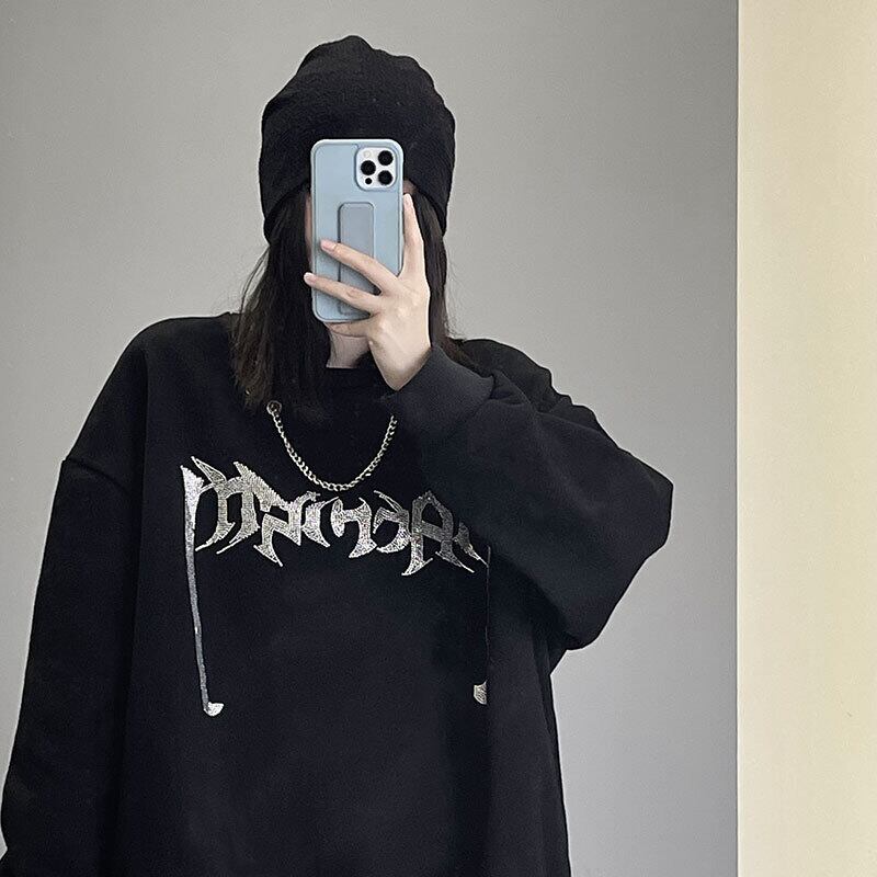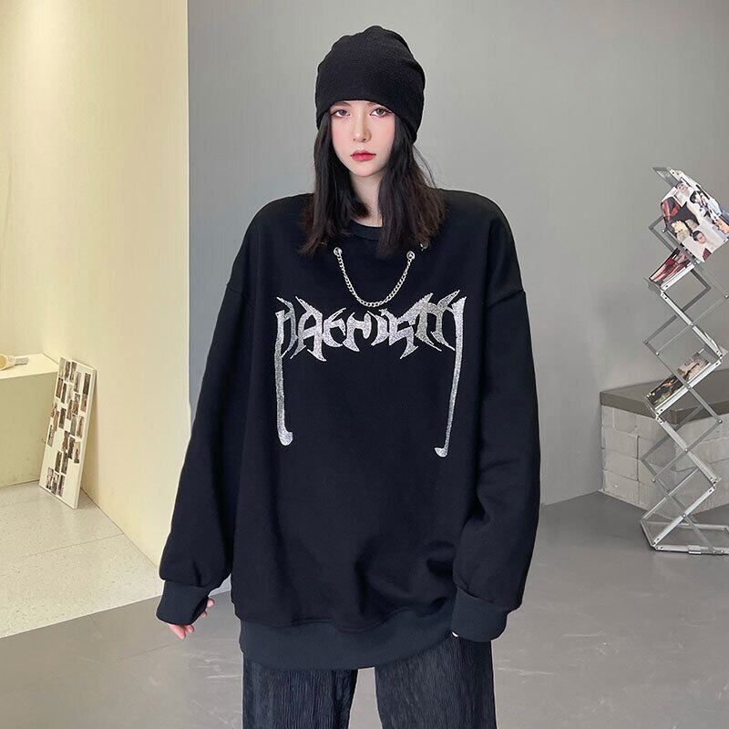 プルオーバー セーター レディース秋物韓国ファッションNEWスタイルダークブラックルーズ厚みトップス 原宿 オータム コーデ モノクロ Studio38602634324 | pLegLad Studios
