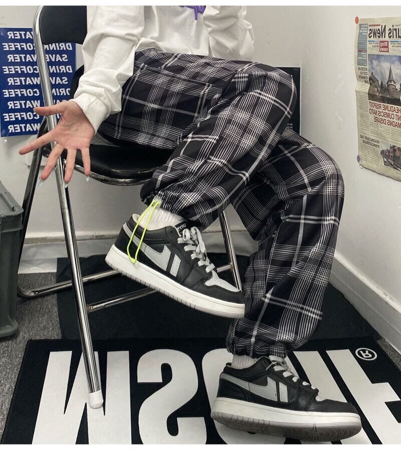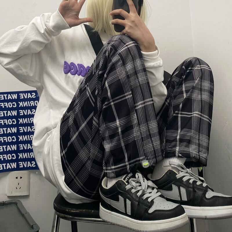 ストレッチウェストカジュアル格子柄パンツ 秋物韓国ファッションNEWルーズレギンス ハイウェストスリム エラスティック 伸縮 オータム スタイル ウエスト コーデ モノクロ Studio41789719782 | pLegLad Studios