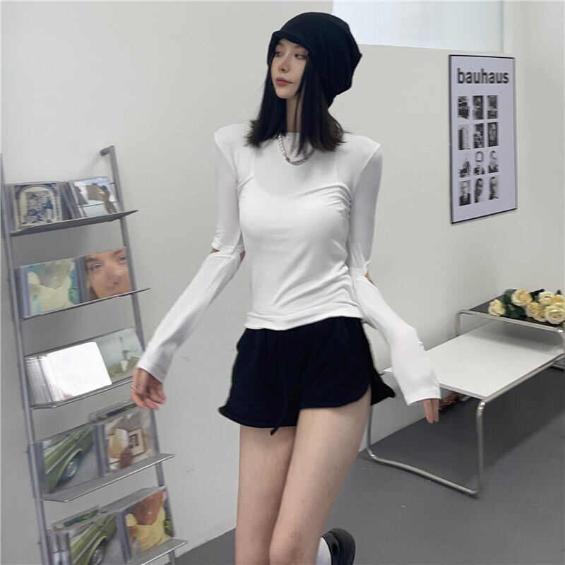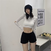 韓国ファッションソリッド カラーカジュアルTシャツシャツ 秋物NEWショートゆったり ロング オータム ソリッドカラー ボーイズ スタイル 長袖 コーデ モノクロ Studio58185528407 | pLegLad Studios