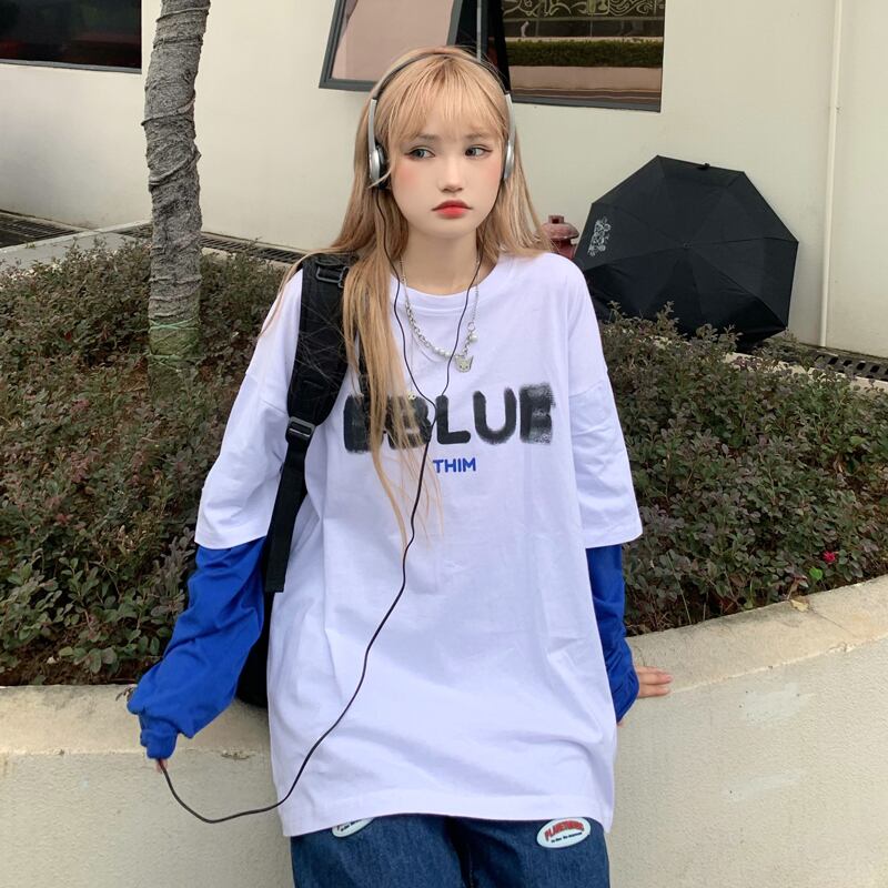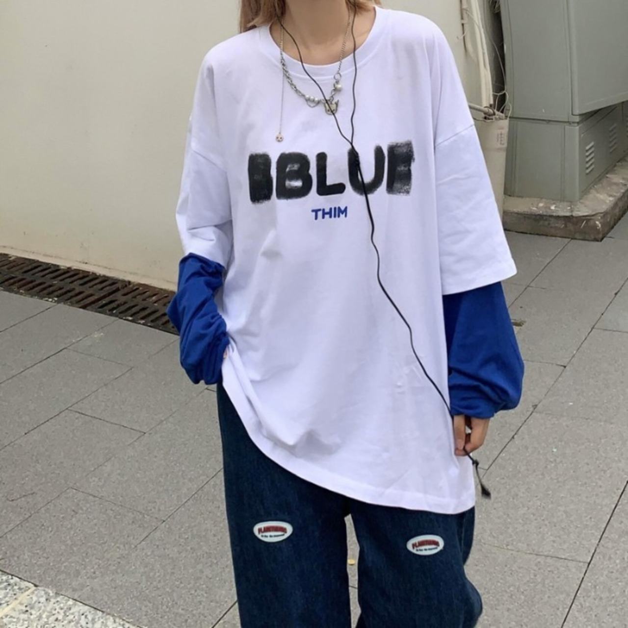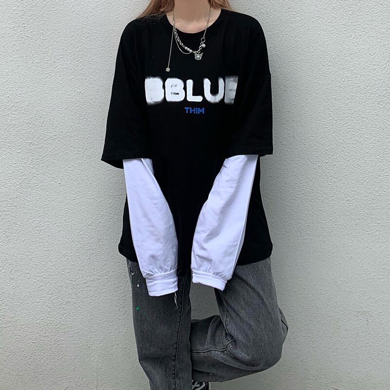 人気ラウンドネックTシャツレディース秋物韓国ファッションNEWプリントトップス ロング 原宿 オータム Oネック スタイル 長袖 コーデ モノクロ Studio88016297624 | pLegLad Studios