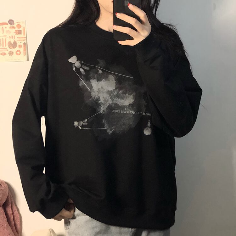 ルーズプルオーバー セーター レディース秋物韓国ファッションNEWプリントカジュアルラウンドネックジャケット オータム Oネック スタイル コーデ モノクロ Studio45100618338 | pLegLad Studios