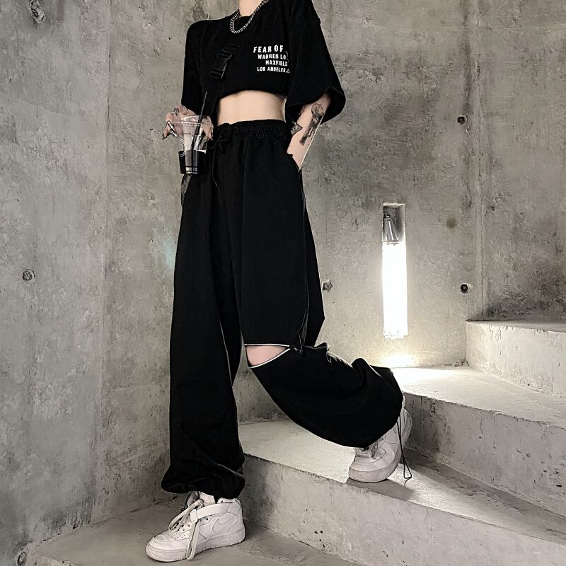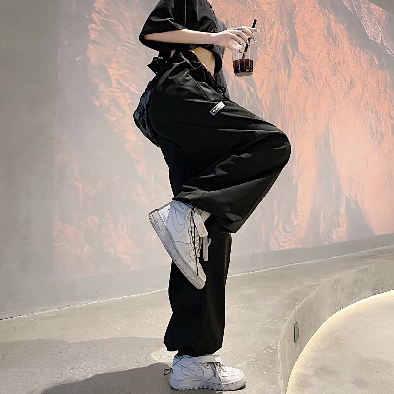 ギャザーカジュアルパンツ レディース夏服韓国ファッションNEWジッパールーズハイウェストウェストワイドレッグ ストリート 夏物 ワイドパンツ ボーイズ スタイル ウエスト Studios28477475565 | pLegLad Studios