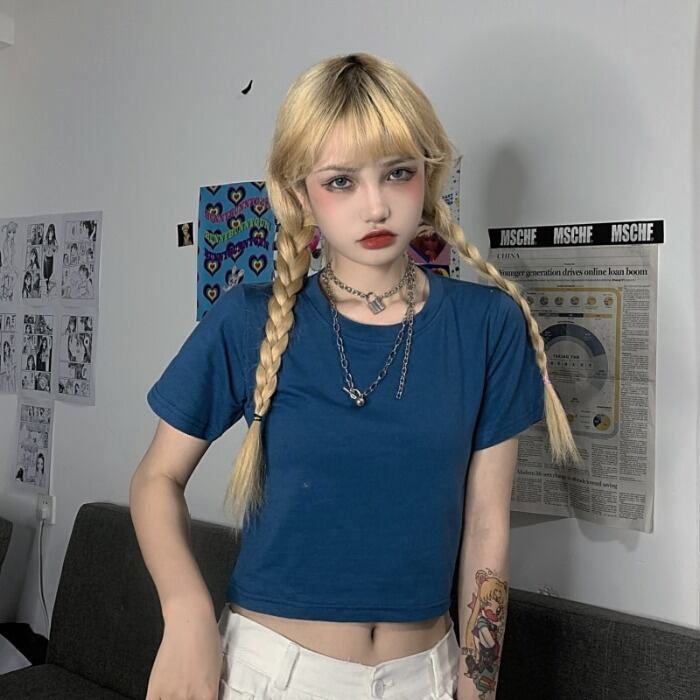 夏服スリムショートゆったりシャツ レディース韓国ファッションNEWソリッド カラールーズTシャツ 夏物 ソリッドカラー ボーイズ スタイル コーデ モノクロ Studio49292981857 | pLegLad Studios