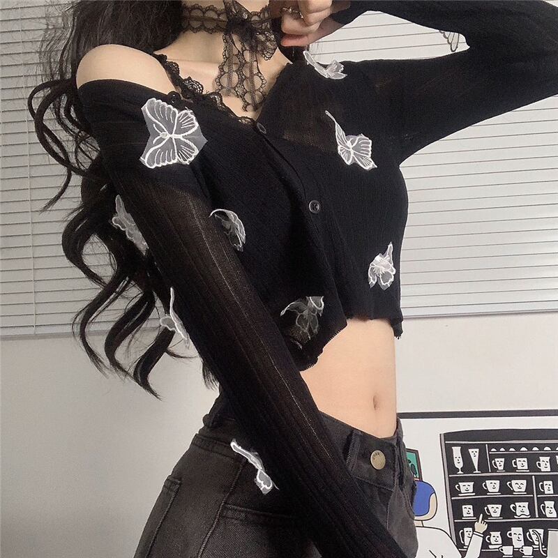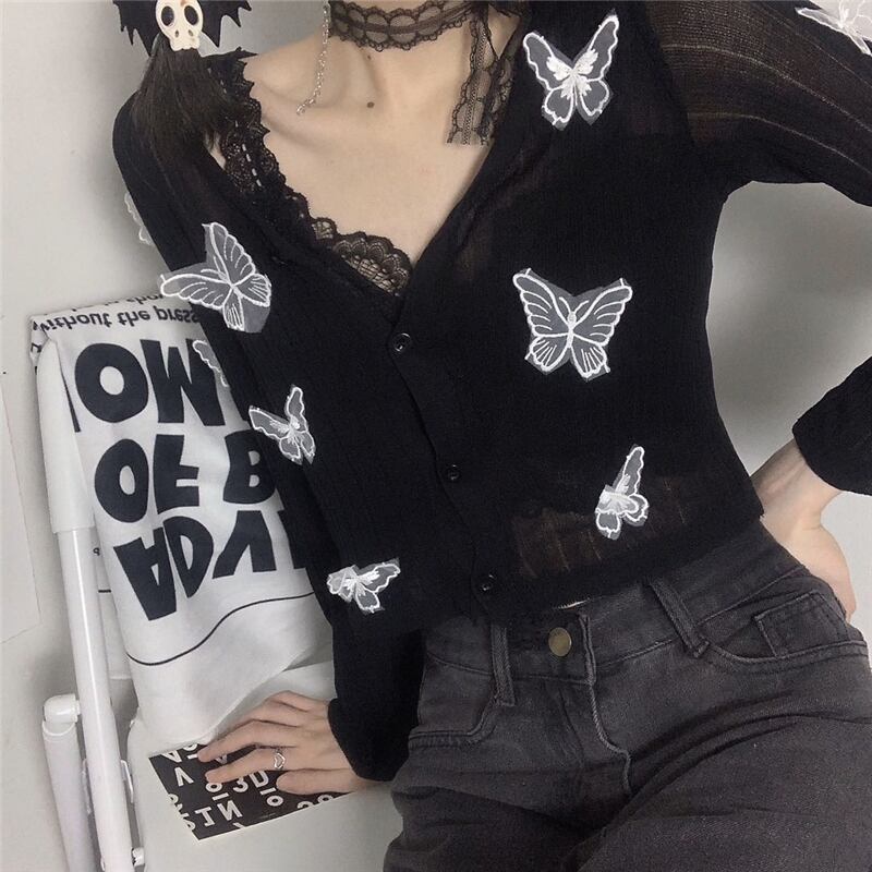薄手ニットセーター レディース秋物韓国ファッションNEWButterflyデザイン ショートルーズカーディガン ロング オータム スタイル 長袖 Studios2892666272 | pLegLad Studios