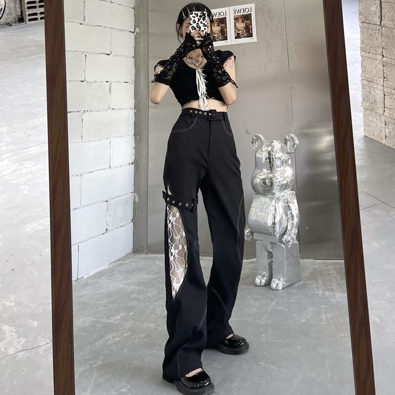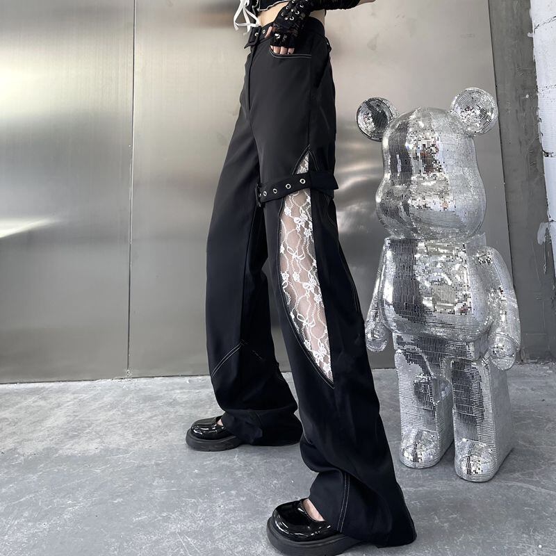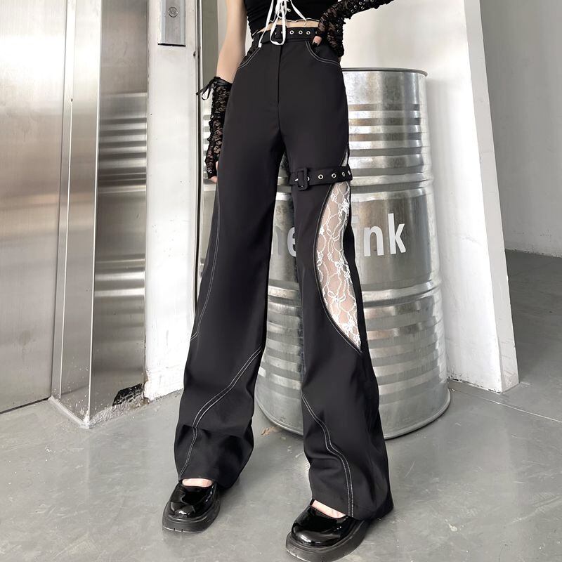 カジュアルパンツ レディース夏服韓国ファッションNEWダークレースルーズハイウェストウェスト薄手ワイドレッグ ストリート 大人ガーリー スウィート キュート 夏物 ワイドパンツ ステッチ スタイル ウエスト Studios29375164150 | pLegLad Studios