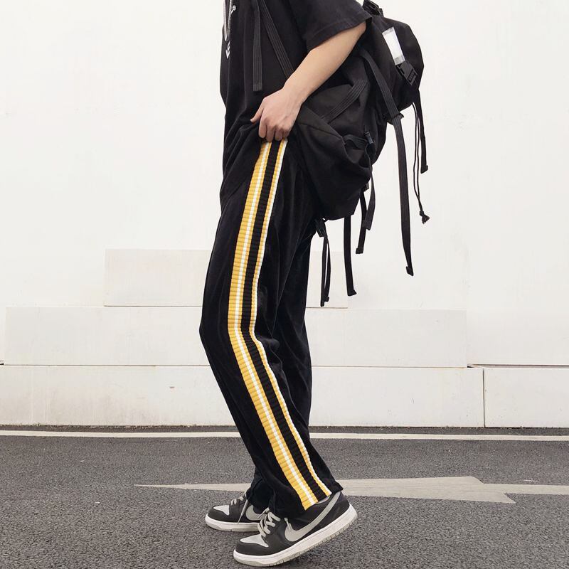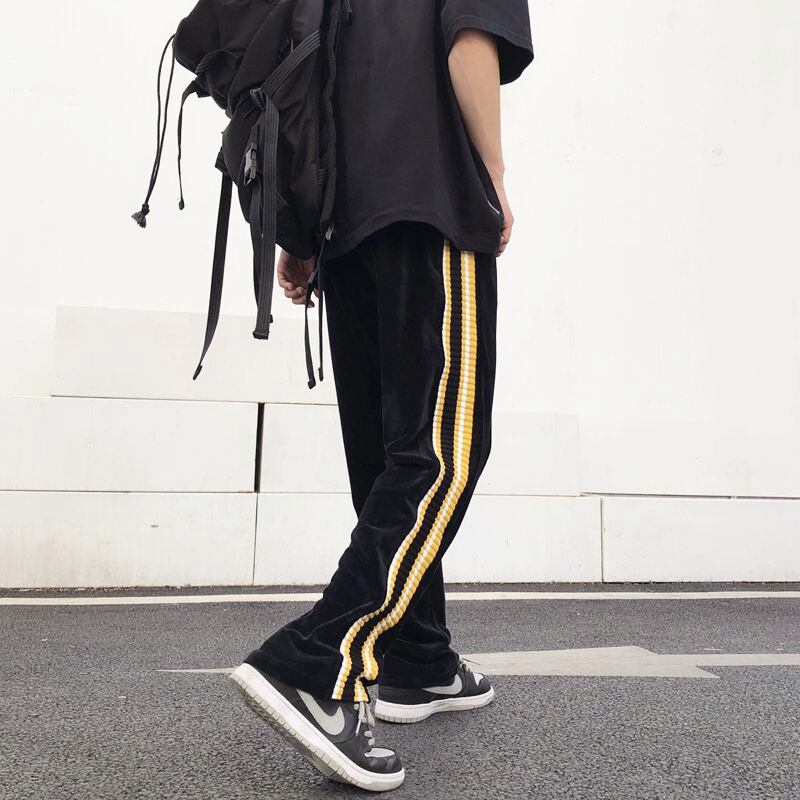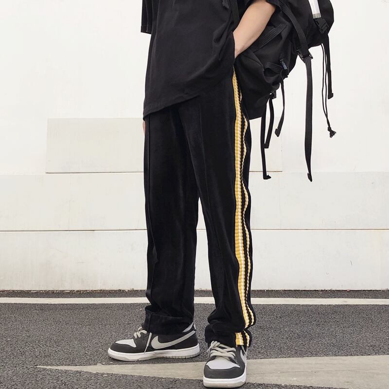 スタンダードカラーカジュアルパンツ 秋物韓国ファッション厚みルーズワイドレッグハイウェストウェスト レトロ オータム ワイドパンツ スタイル ウエスト コーデ モノクロ Studio74227784129 | pLegLad Studios