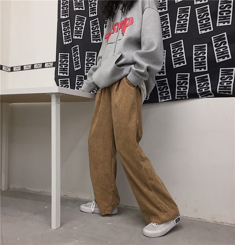 コーデュロイカジュアルパンツ レディース秋物韓国ファッションNEWスタンダードハイウェストウェスト薄手ルーズワイドレッグ レトロ オータム ワイドパンツ スタイル ウエスト Studios27655903009 | pLegLad Studios