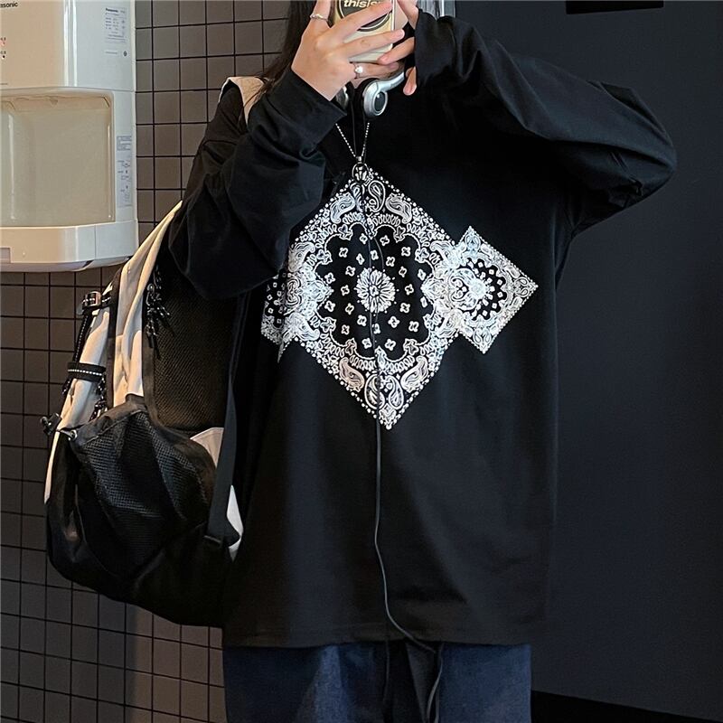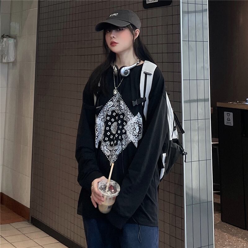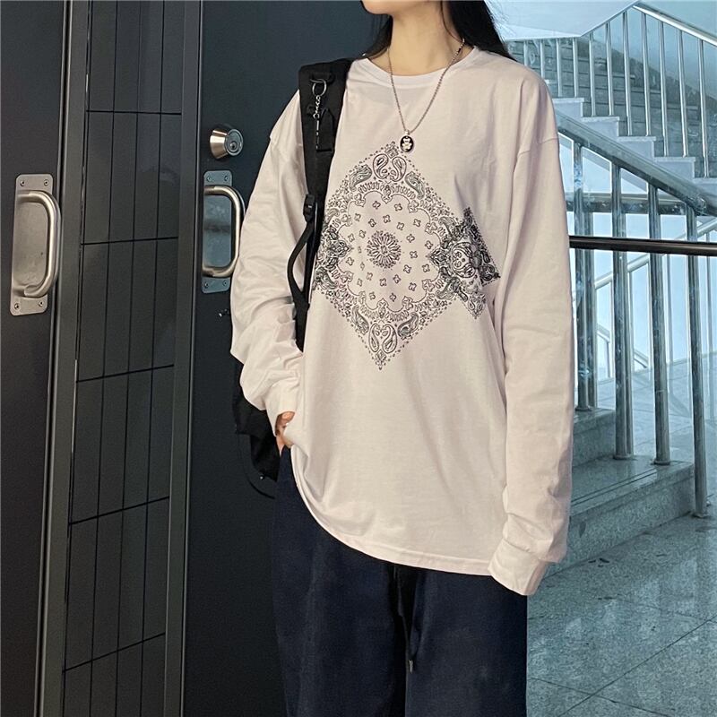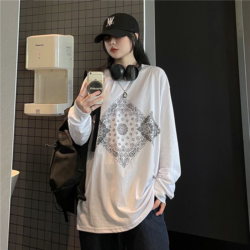 Tシャツシャツ レディース秋物韓国ファッションNEWFlowerデザイン プリントルーズ ロング オータム フラワーデザイン スタイル 長袖 コーデ モノクロ Studio80586249534 | pLegLad Studios