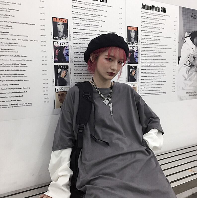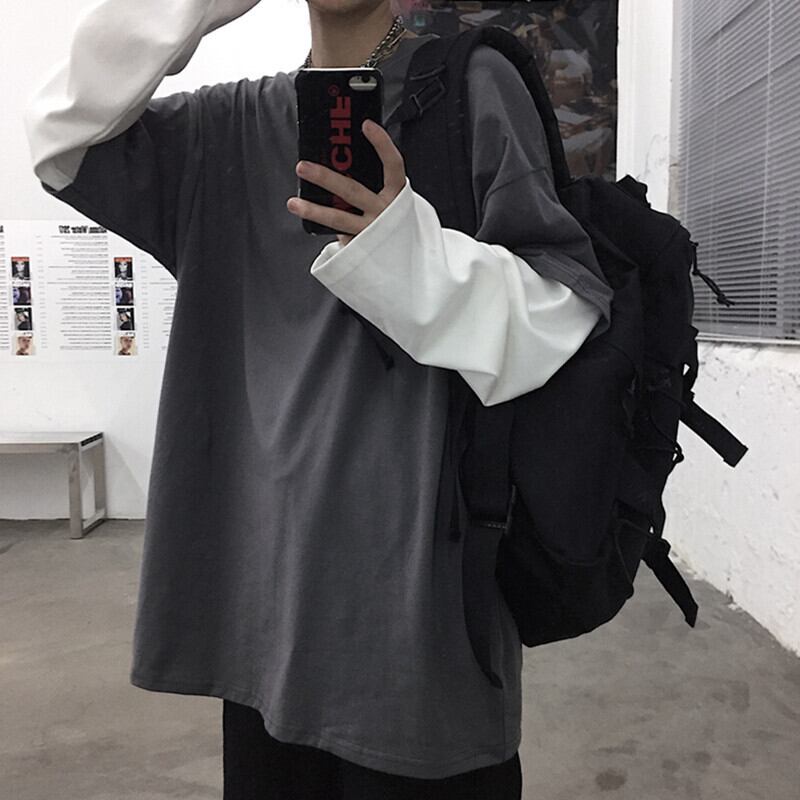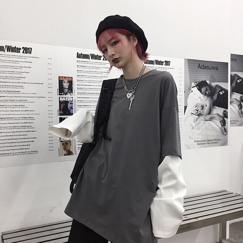 ラウンドネックTシャツシャツ 秋物韓国ファッションNEWスタンダードソリッド カラールーズゆったり ロング レトロ オータム Oネック ソリッドカラー スタイル 長袖 コーデ モノクロ Studio15182295017 | pLegLad Studios