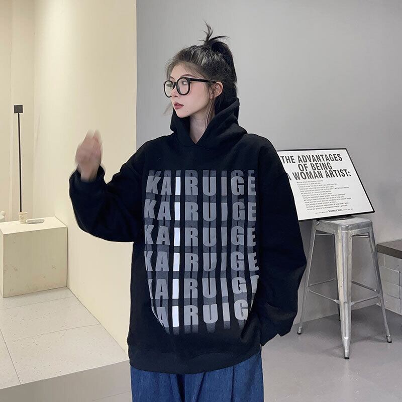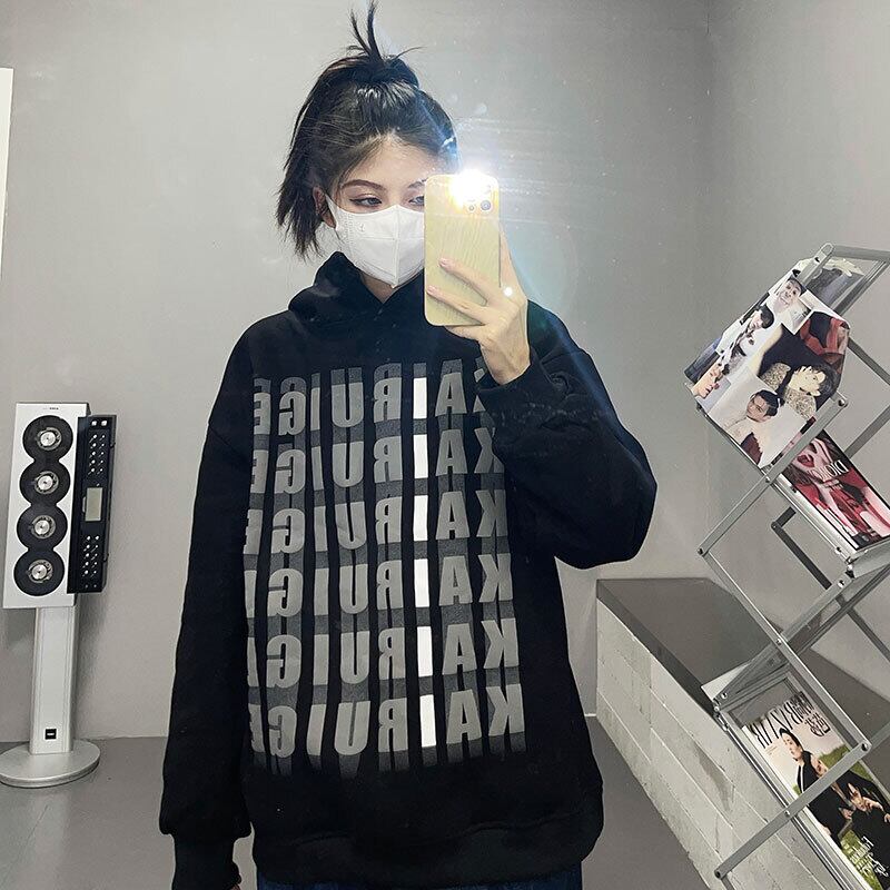 秋物韓国ファッションNEWスタイルプリントルーズフードプルオーバー セーター ジャケット レディース ストリート 原宿 オータム Studios31012123453 | pLegLad Studios