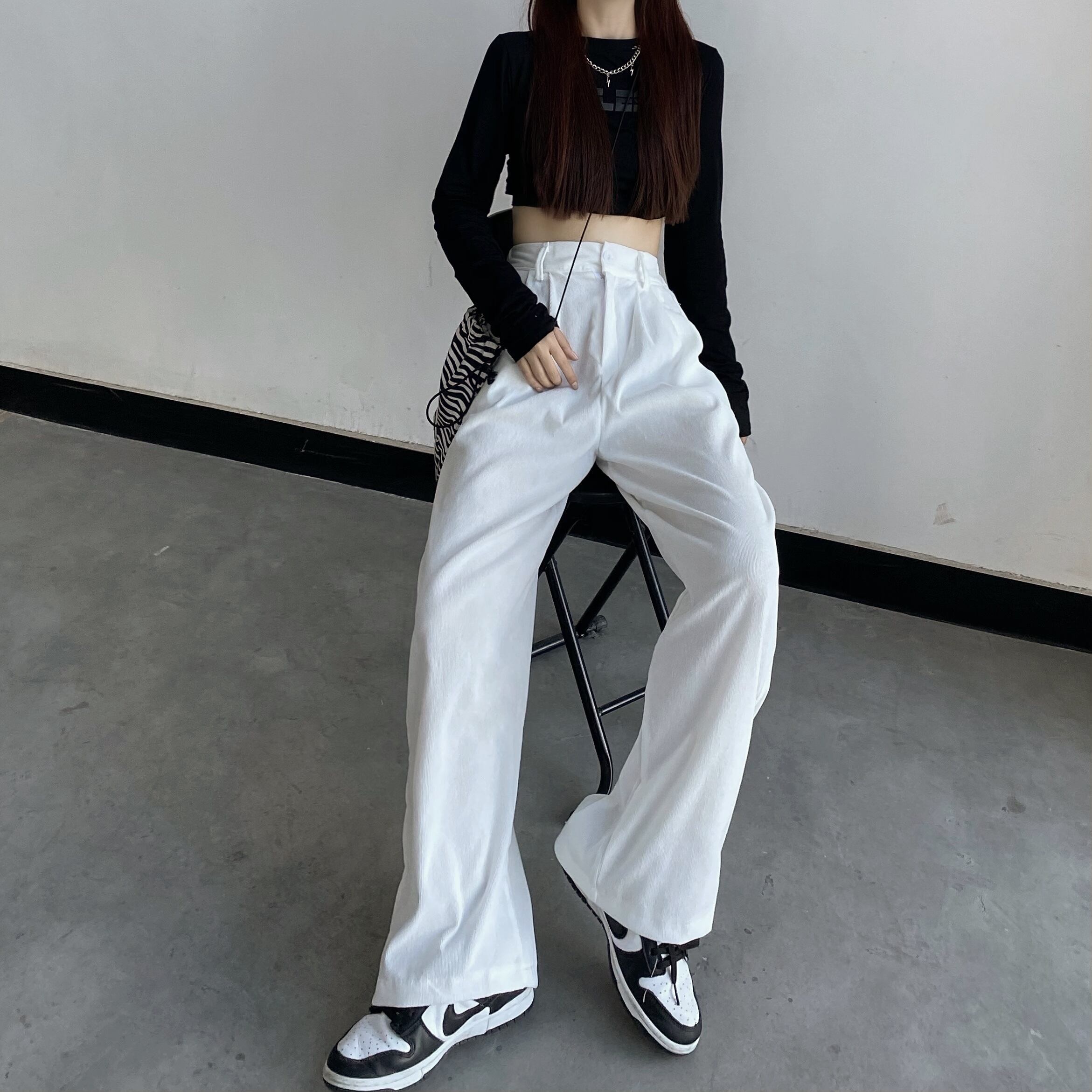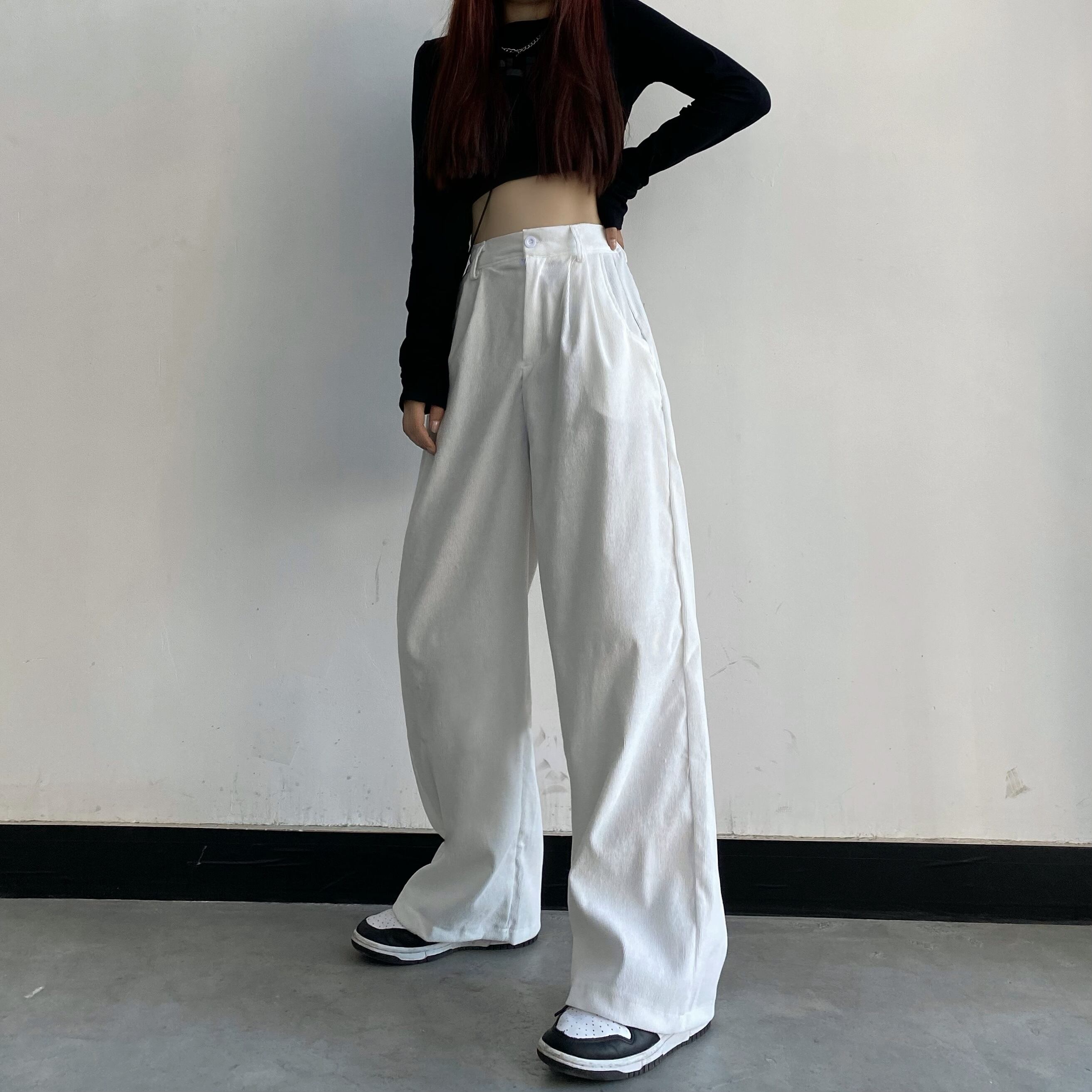 ホワイトコーデュロイカジュアルパンツ レディース夏服韓国ファッションNEWスタンダードルーズハイウェストウェスト薄手 レトロ 夏物 スタイル ウエスト Studios36250597396 | pLegLad Studios