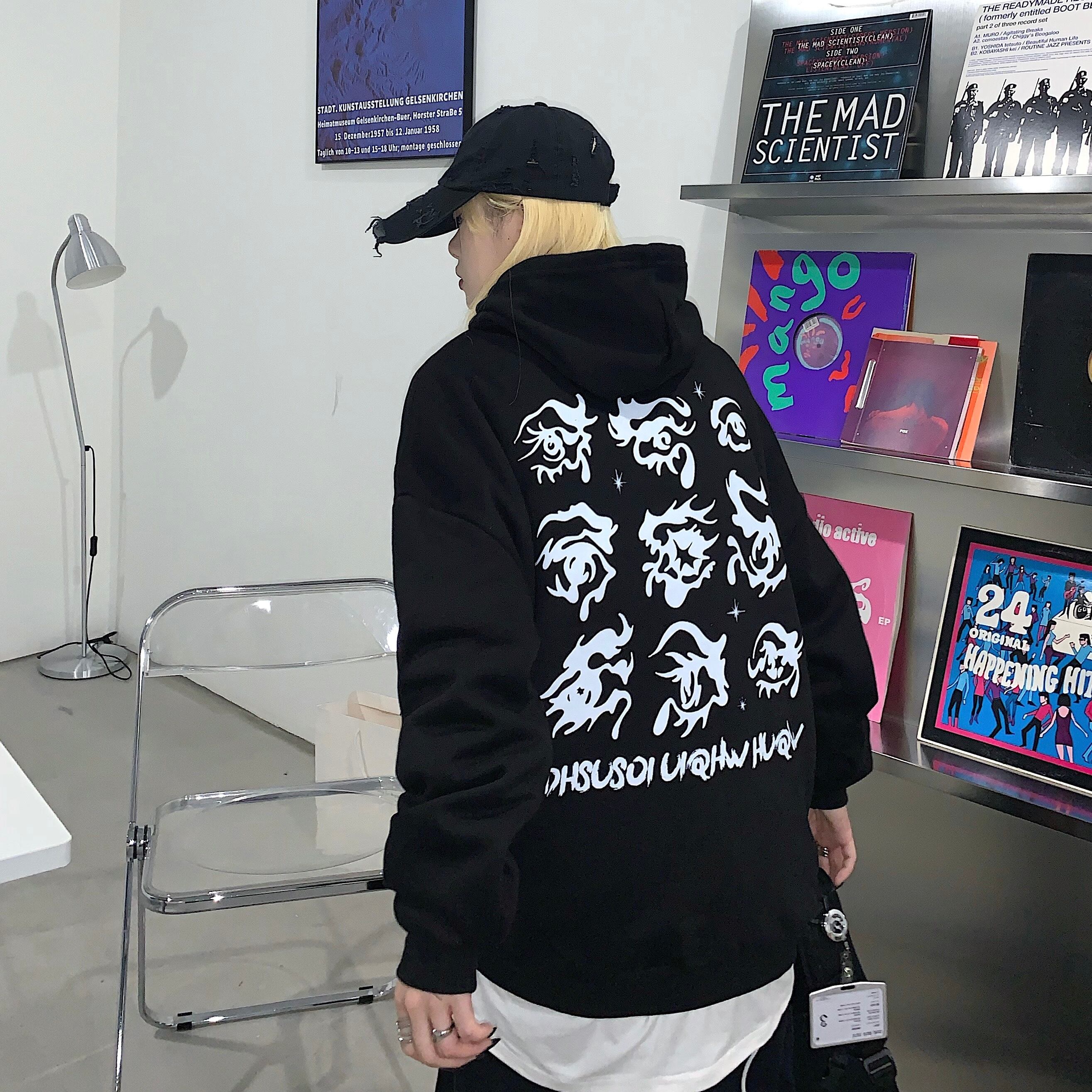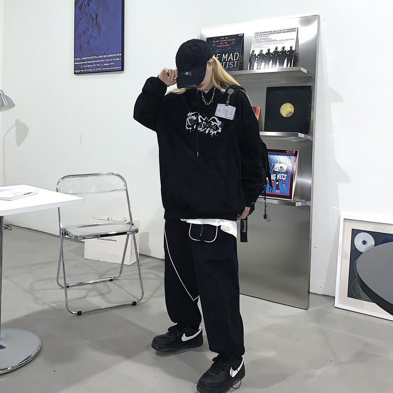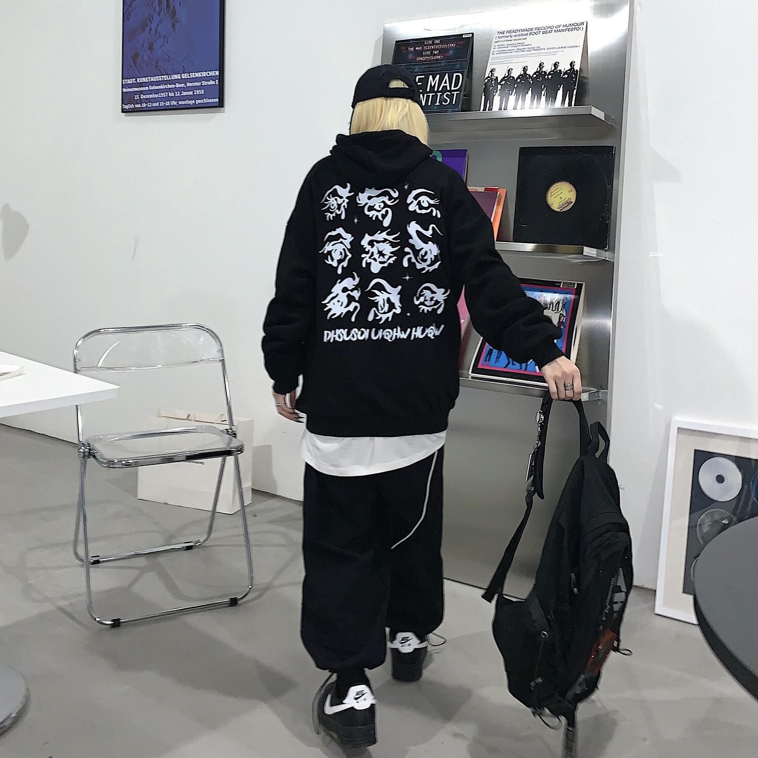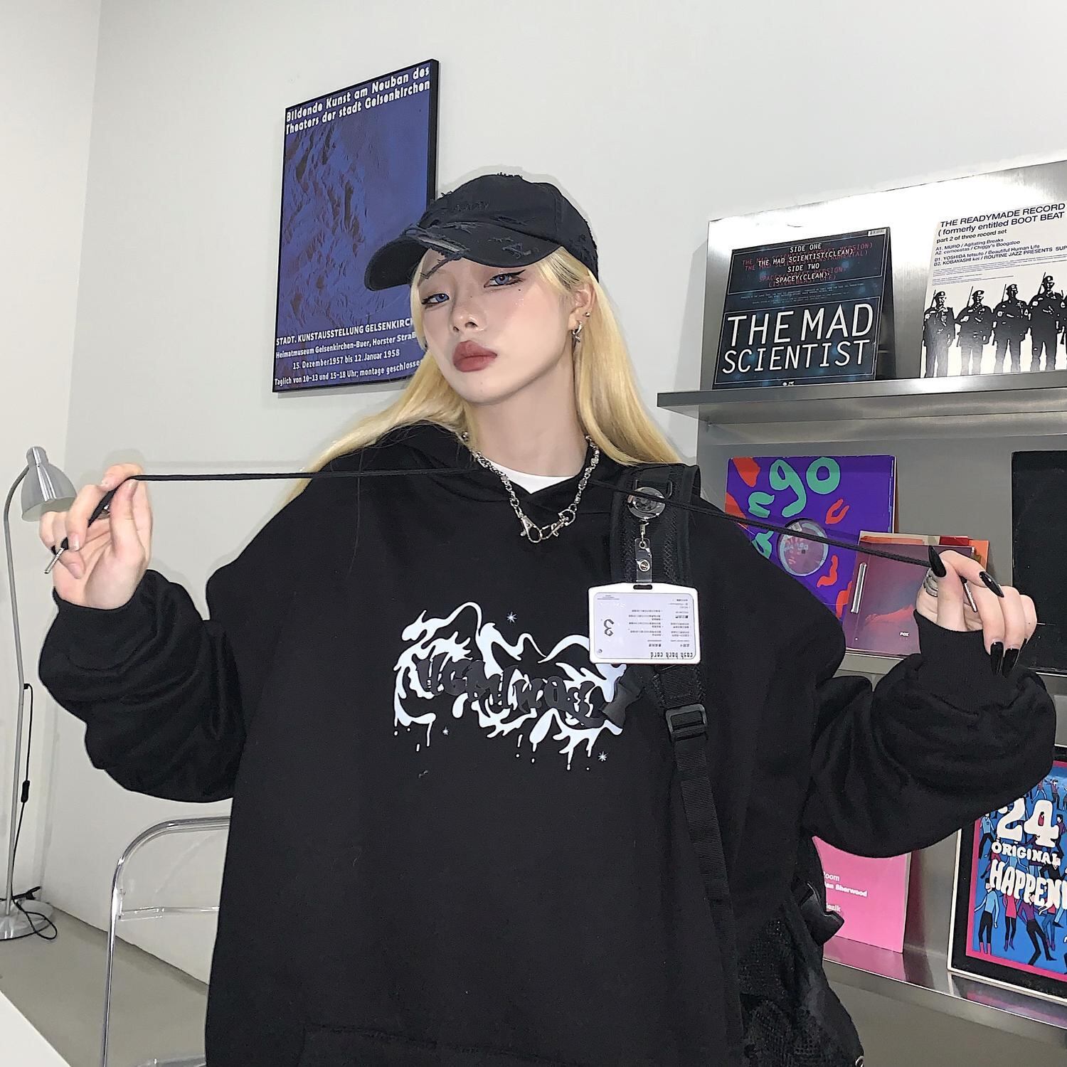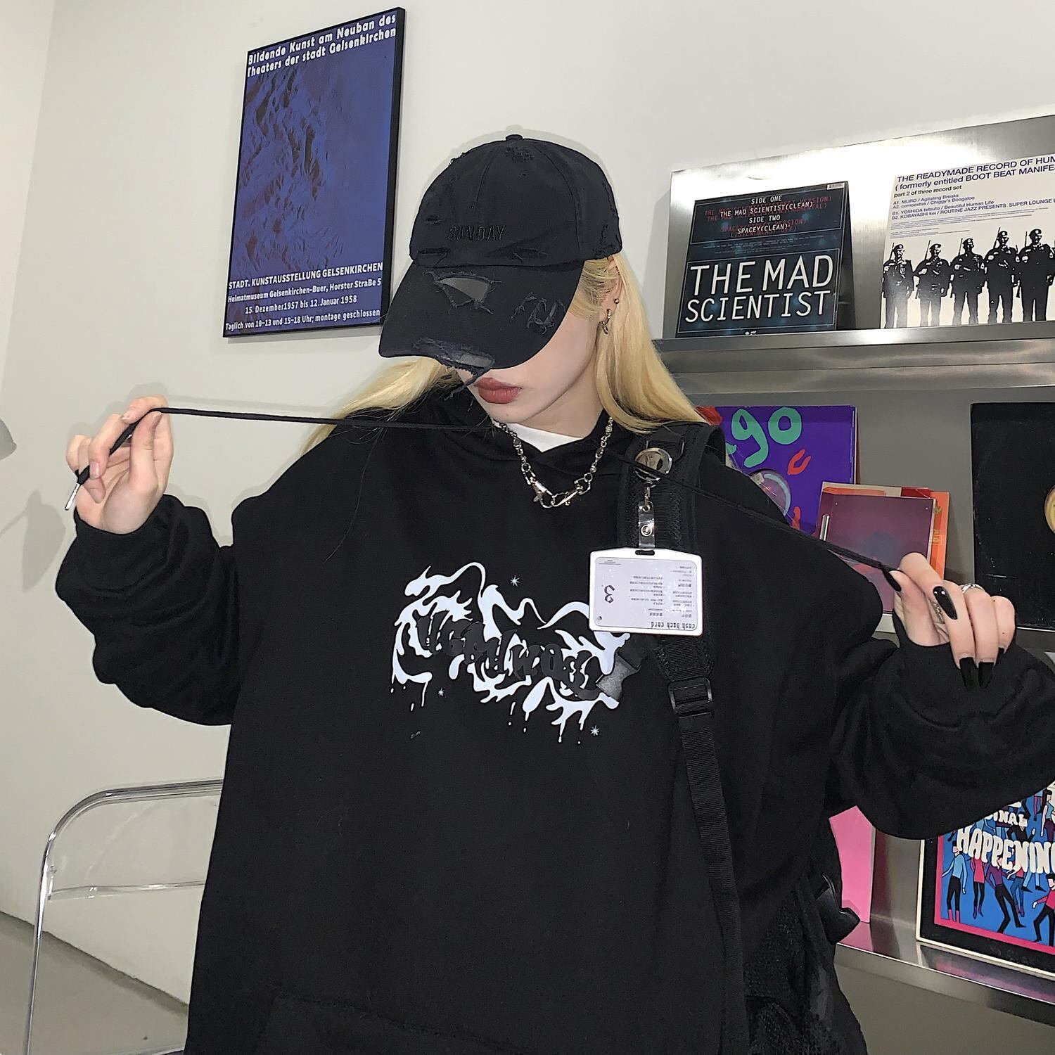 秋物フードセーター レディース韓国ファッションNEWダークラインプリントルーズトップス コート オータム スタイル コーデ モノクロ Studio82648701706 | pLegLad Studios