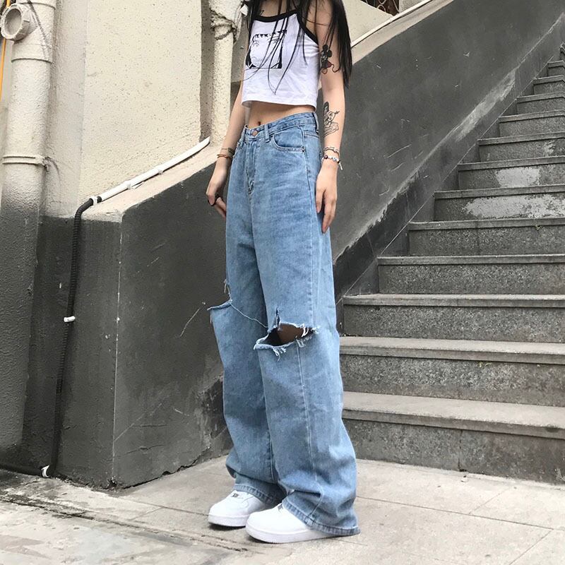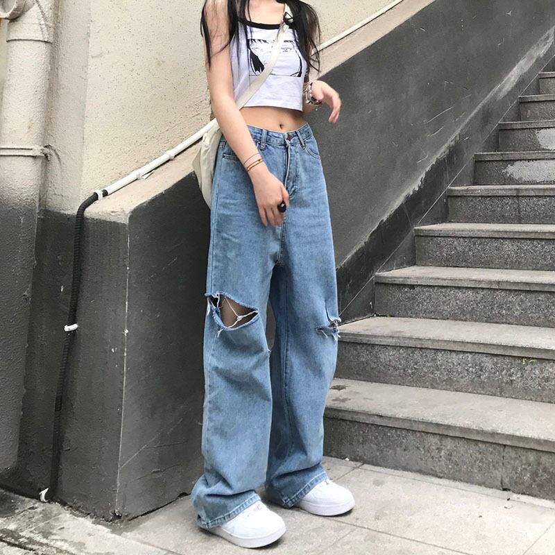 ジーンズ レディース韓国ファッションNEWスタンダードルーズ薄手カジュアルハイウェスト レトロ ストリート スタイル ウエスト Studios24403011986 | pLegLad Studios