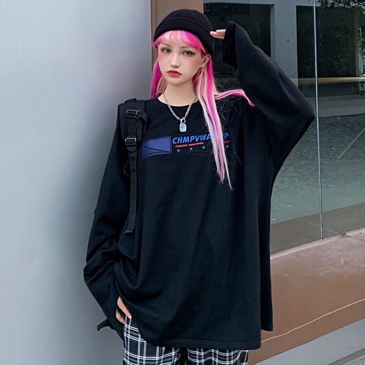 シャツ トップス レディース秋物韓国ファッションNEWスタイルスタンダードプリントルーズラウンドネックTシャツ ロング レトロ 原宿 オータム Oネック 長袖 Studios17748087281 | pLegLad Studios