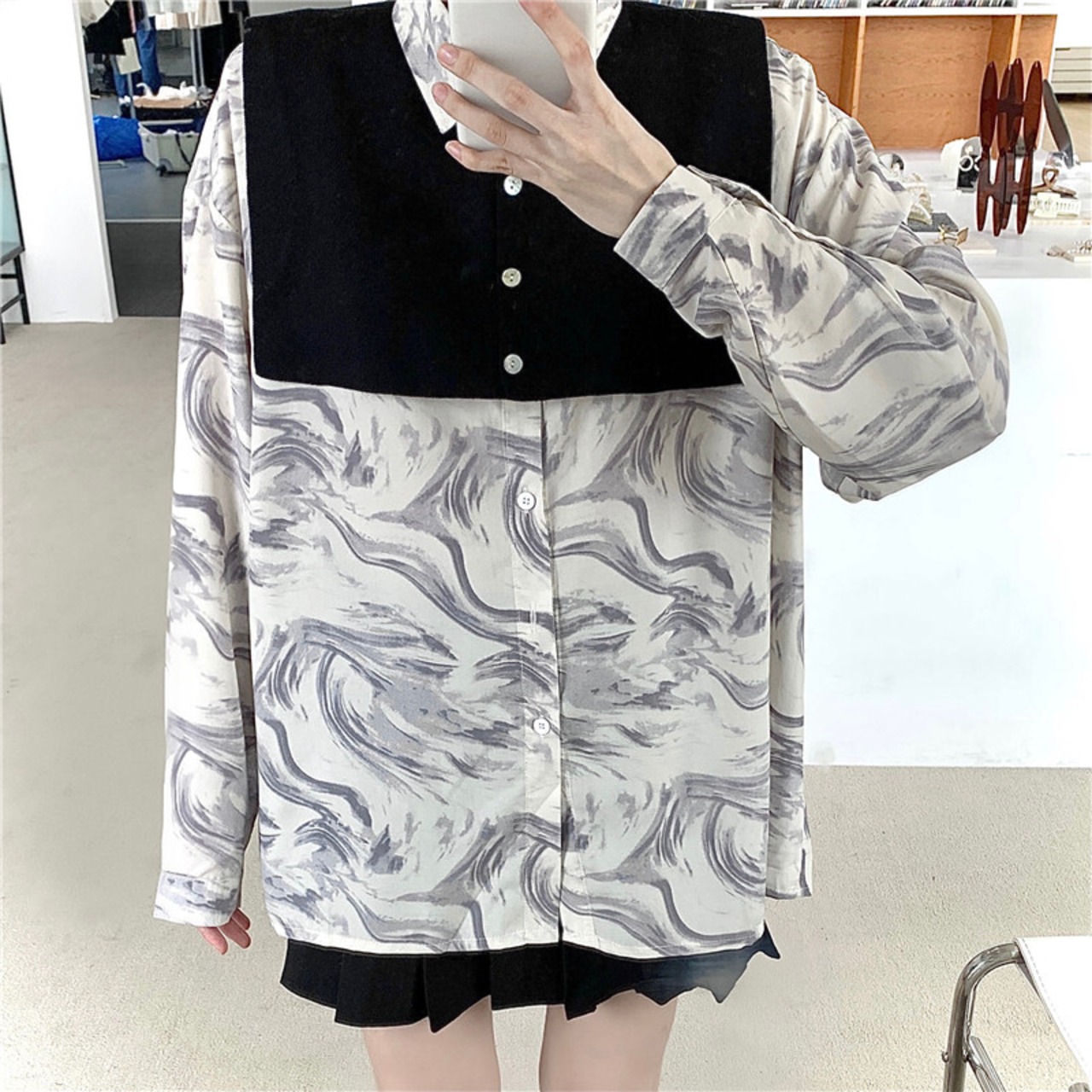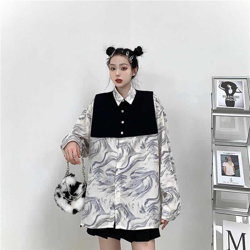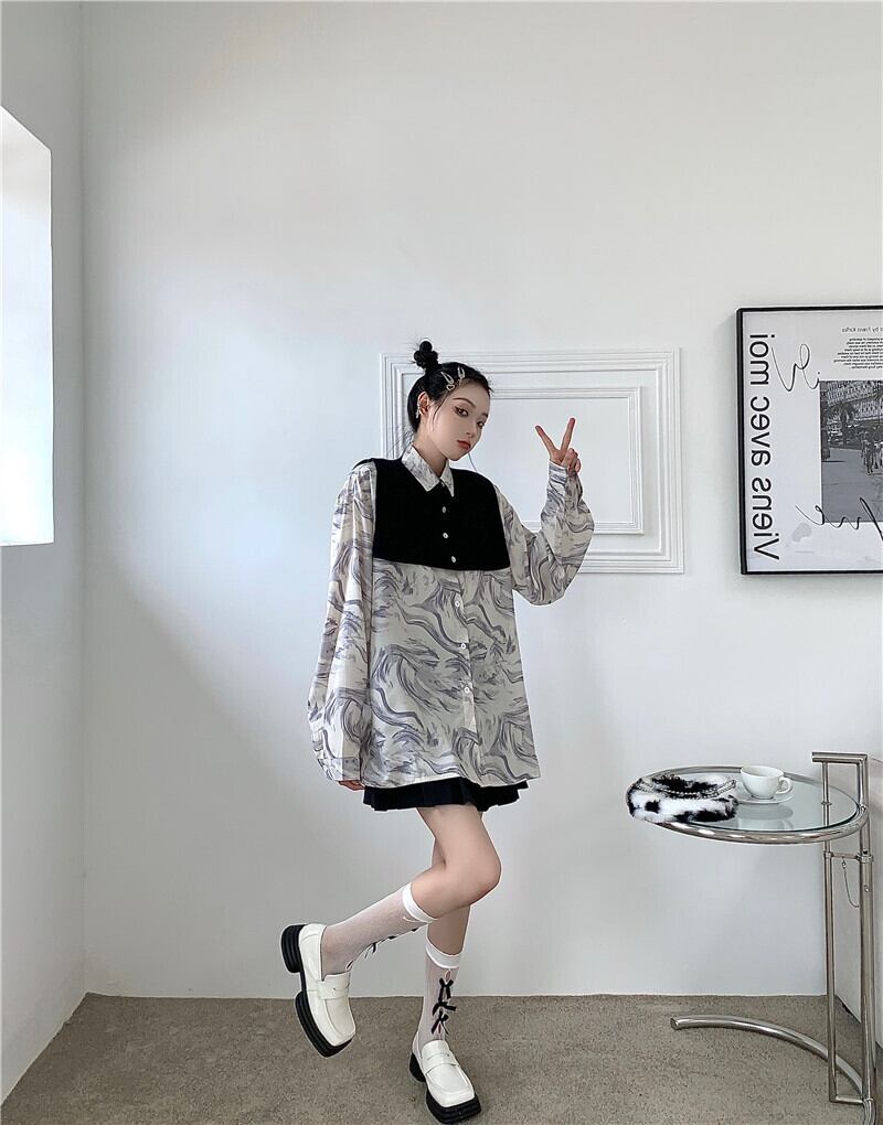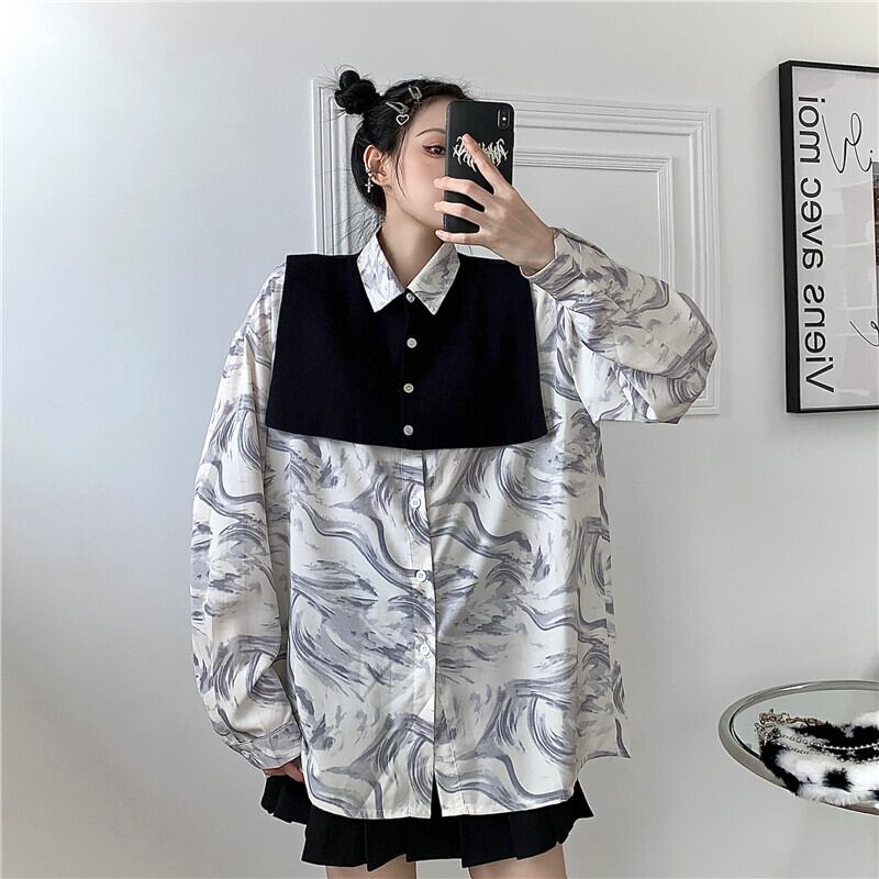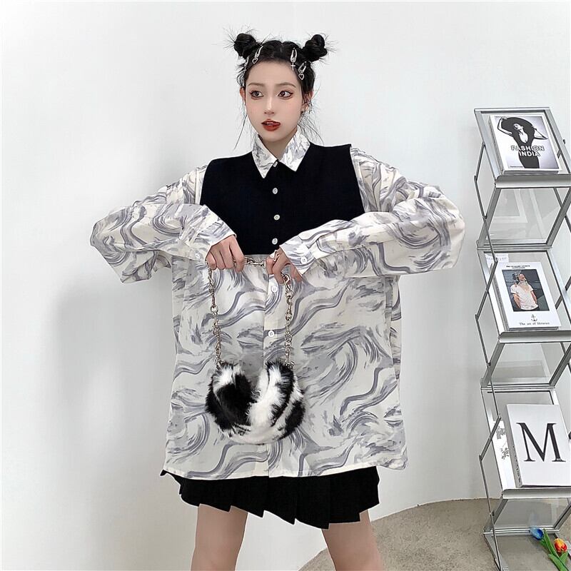 秋物韓国ファッションNEWブラックニットショールルーズカジュアルカラーシャツ レディース ロング ストリート オータム スタイル 長袖 Studios89994305297 | pLegLad Studios