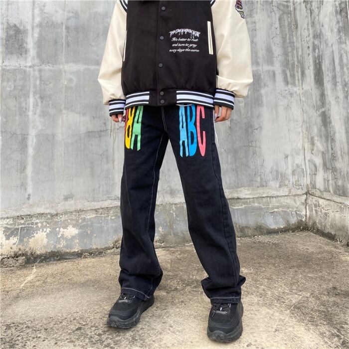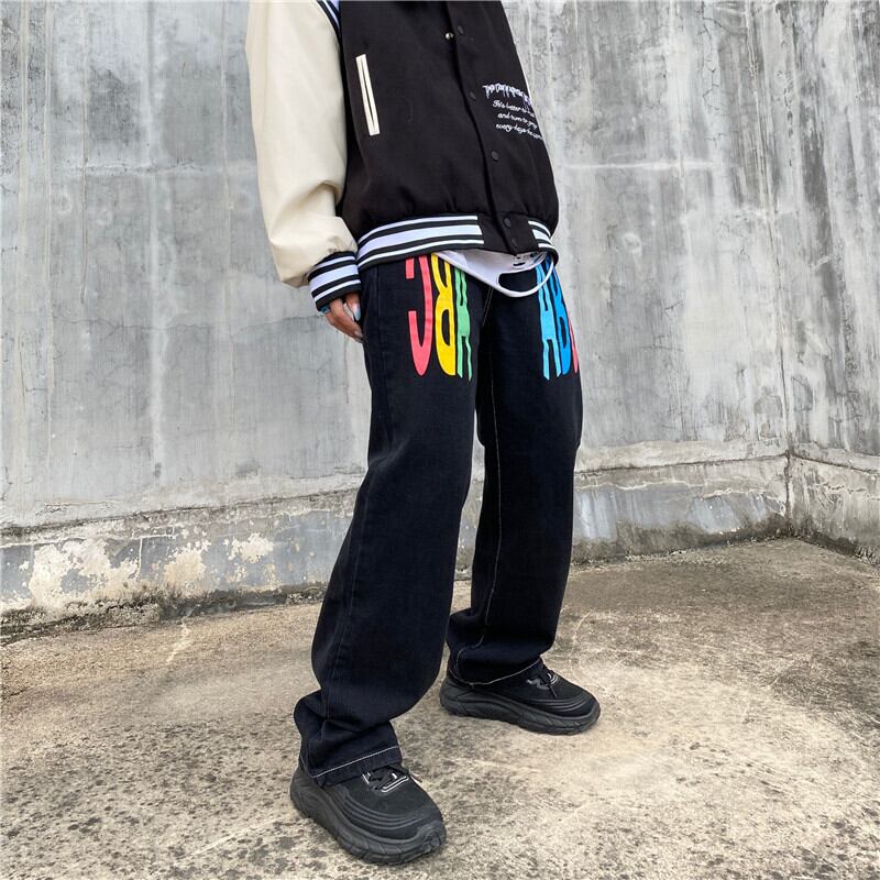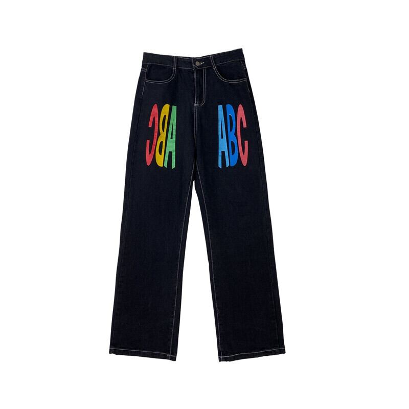 ジーンズ レディース韓国ファッションNEWダークプリントルーズハイウェストウェスト薄手ワイドレッグ ワイドパンツ スタイル ウエスト Studios53872805221 | pLegLad Studios