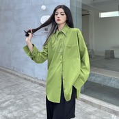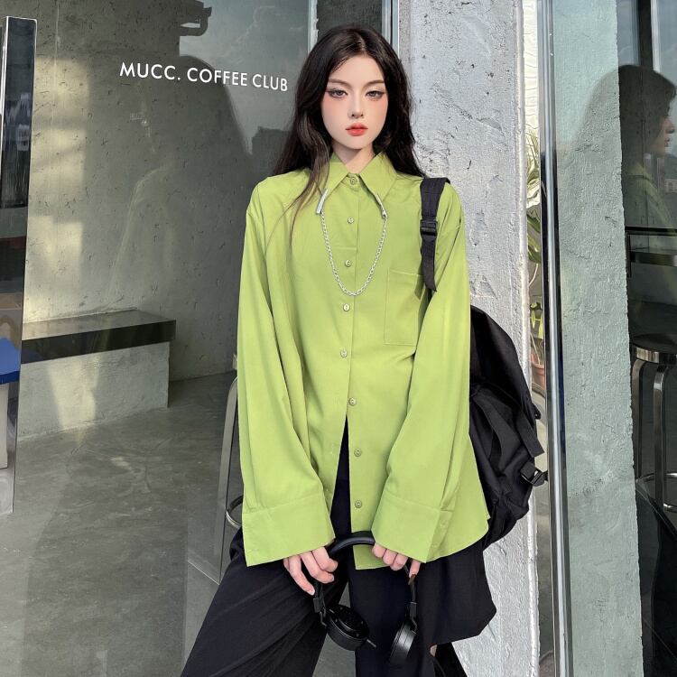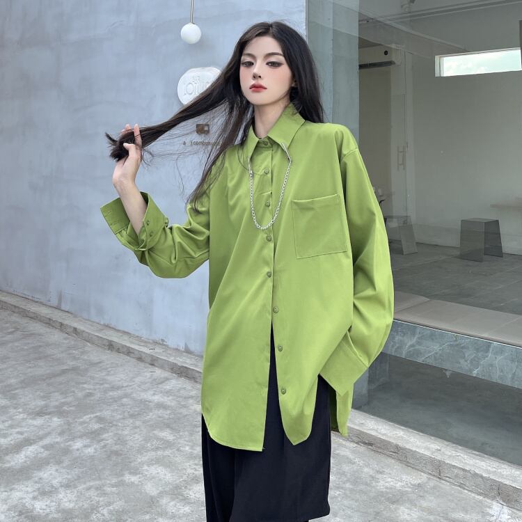 秋物韓国ファッションNEWスタイルスタンダードグリーンカジュアルルーズシャツ トップス レディース ロング レトロ 原宿 オータム 長袖 Studios4757509108 | pLegLad Studios