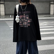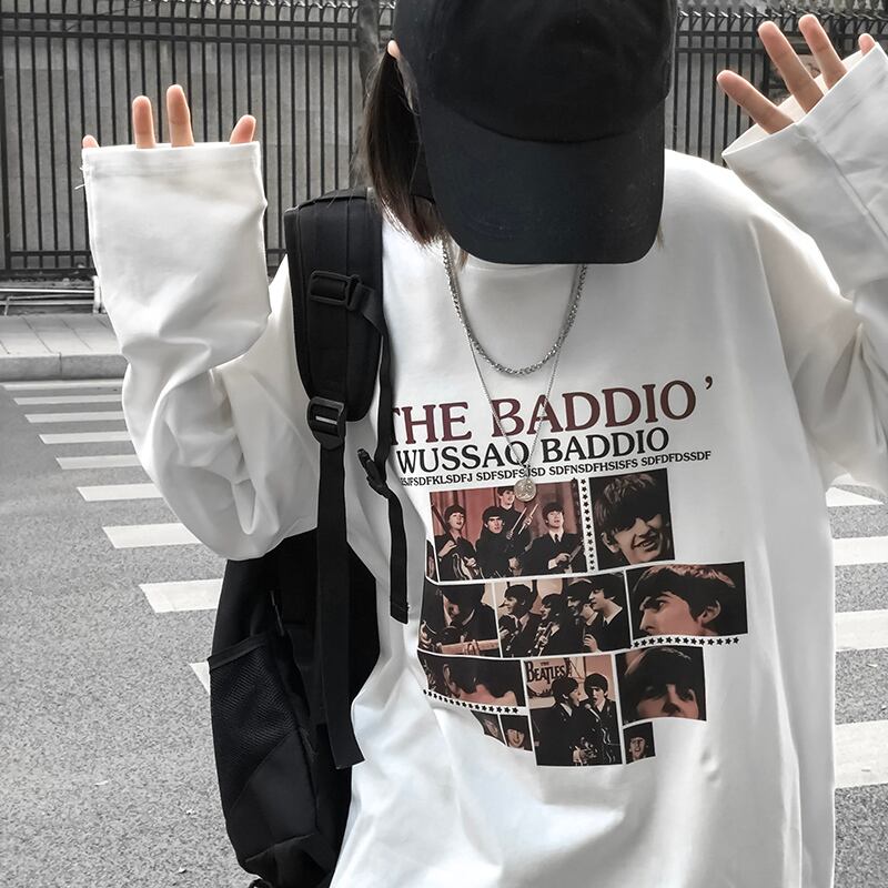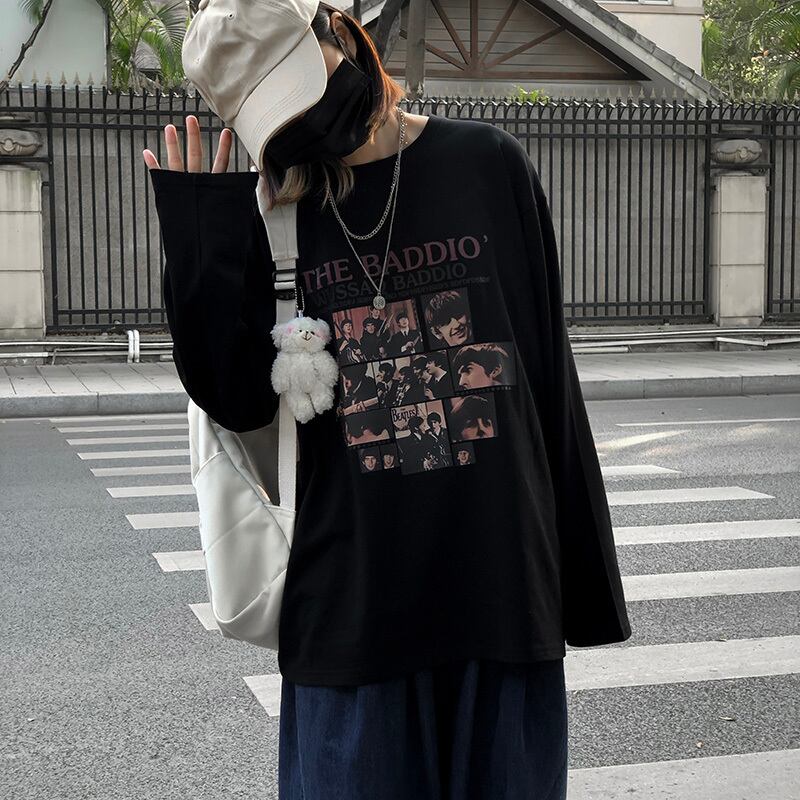 シャツ トップス レディース秋物韓国ファッションNEWスタイルプリントルーズTシャツ ロング ストリート 原宿 オータム ヨーロピアン 長袖 Studios76432854040 | pLegLad Studios
