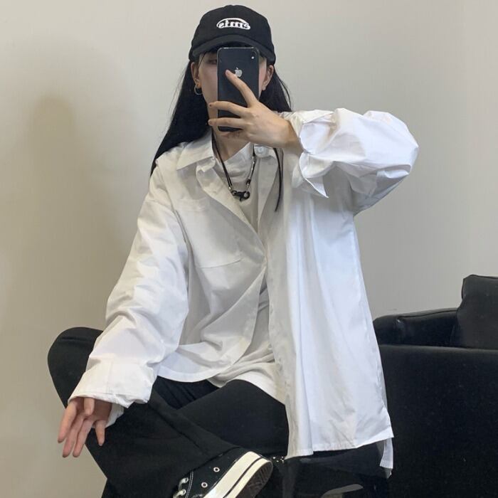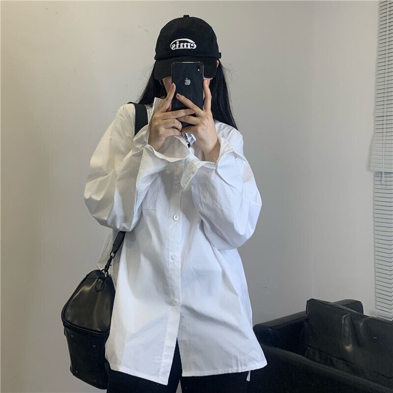 秋物韓国ファッションNEWスタイルスタンダードソリッド カラーベーシックルーズカジュアルシャツ トップス レディース ロング レトロ 原宿 オータム ソリッドカラー 長袖 Studios65008118760 | pLegLad Studios