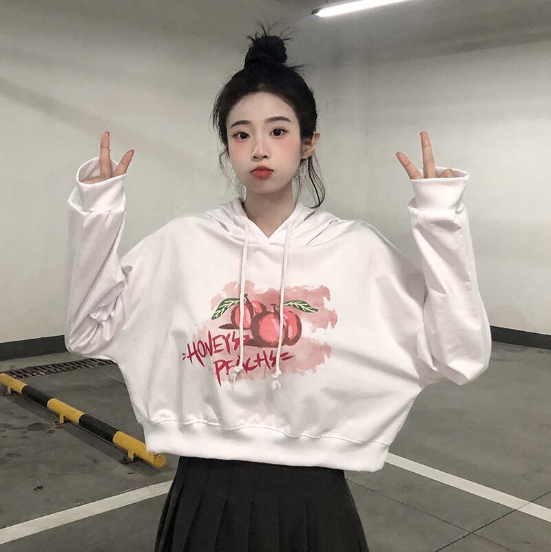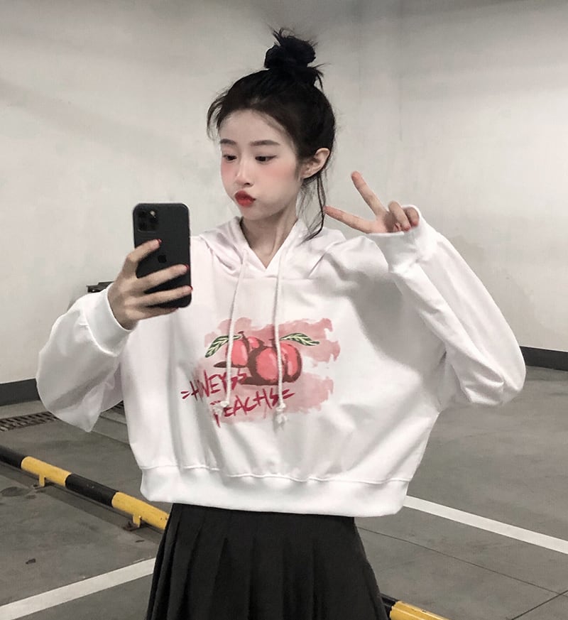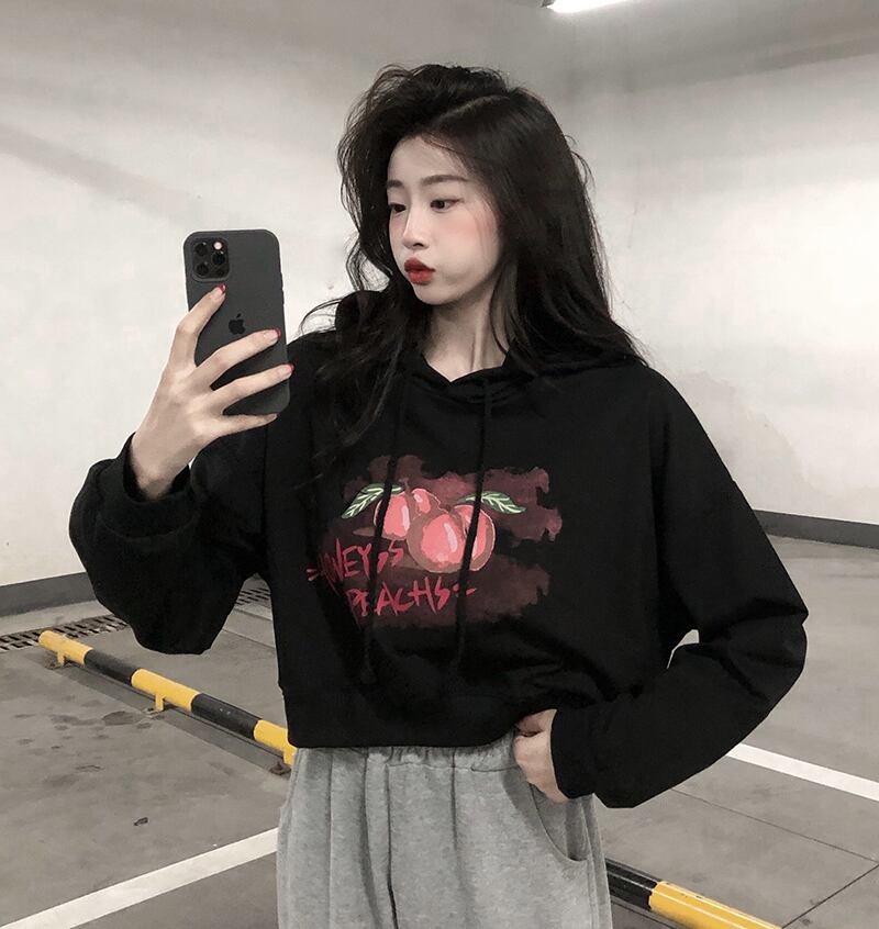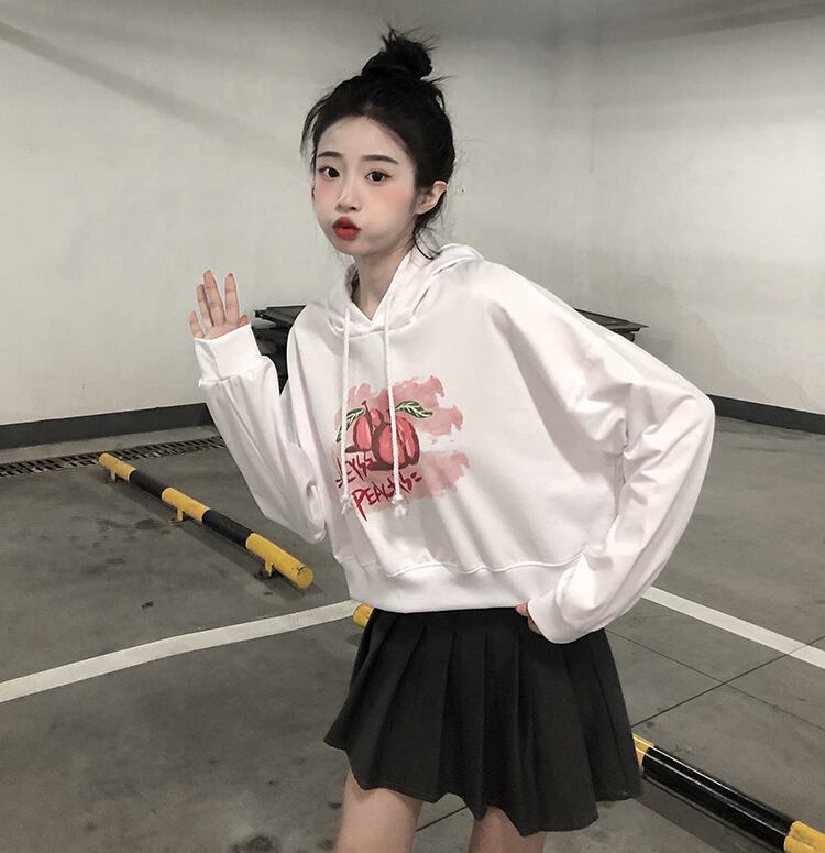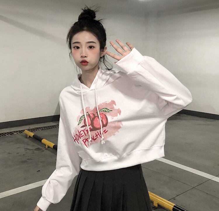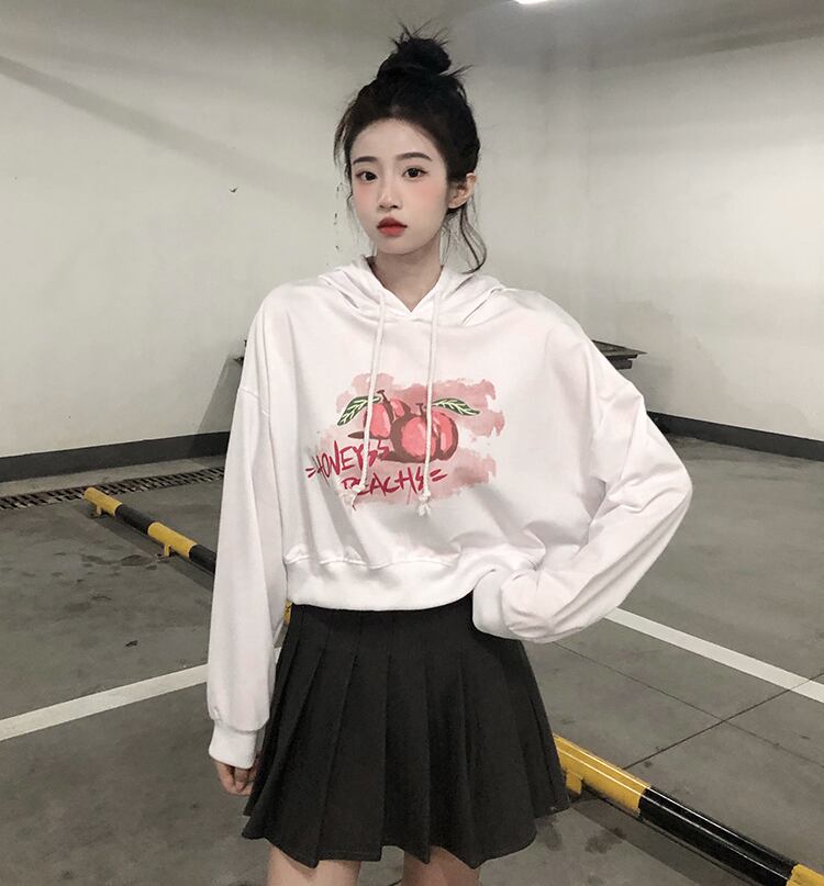 色:白い水彩の桃の短いセーター,黒の水彩ピーチショートセーター