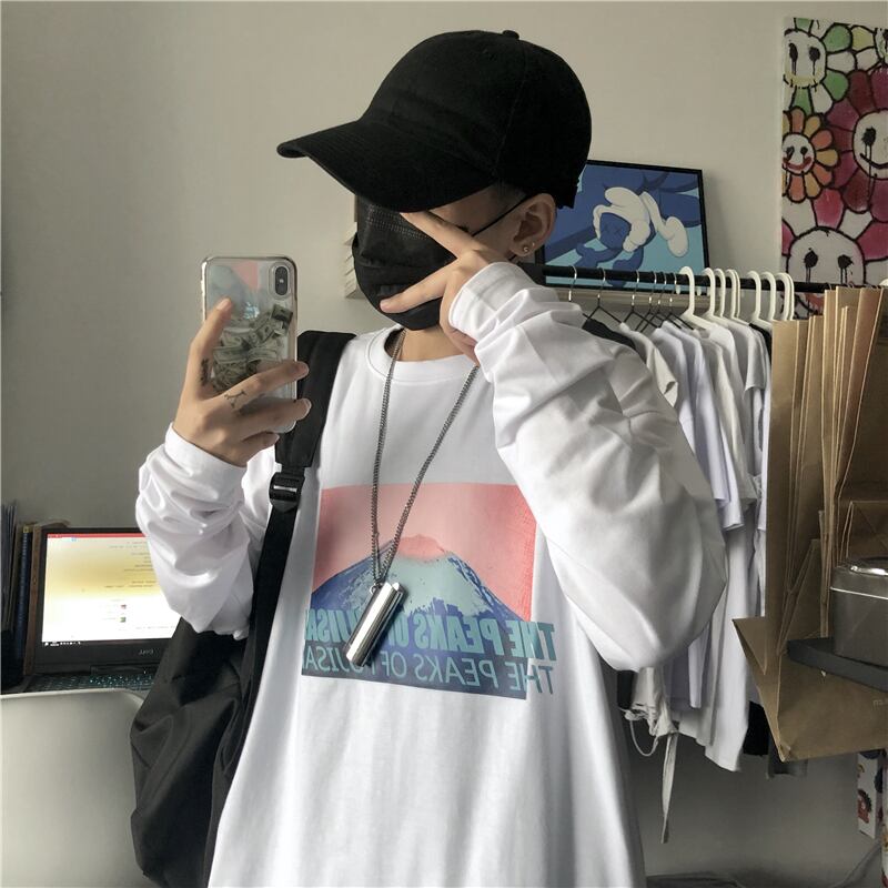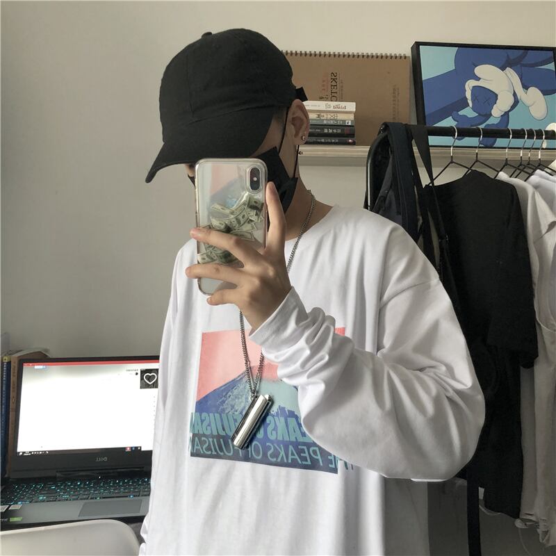 シャツ トップス レディース秋物韓国ファッションプリントカジュアルルーズTシャツ ロング ストリート オータム スタイル 長袖 Studios90222391601 | pLegLad Studios