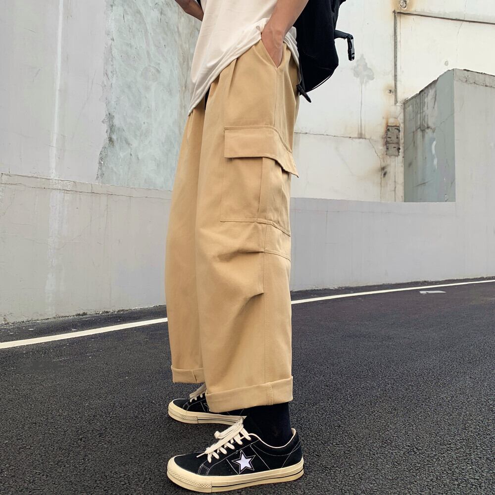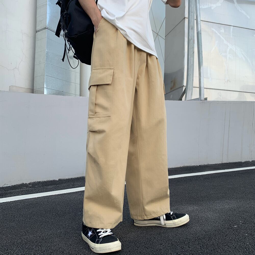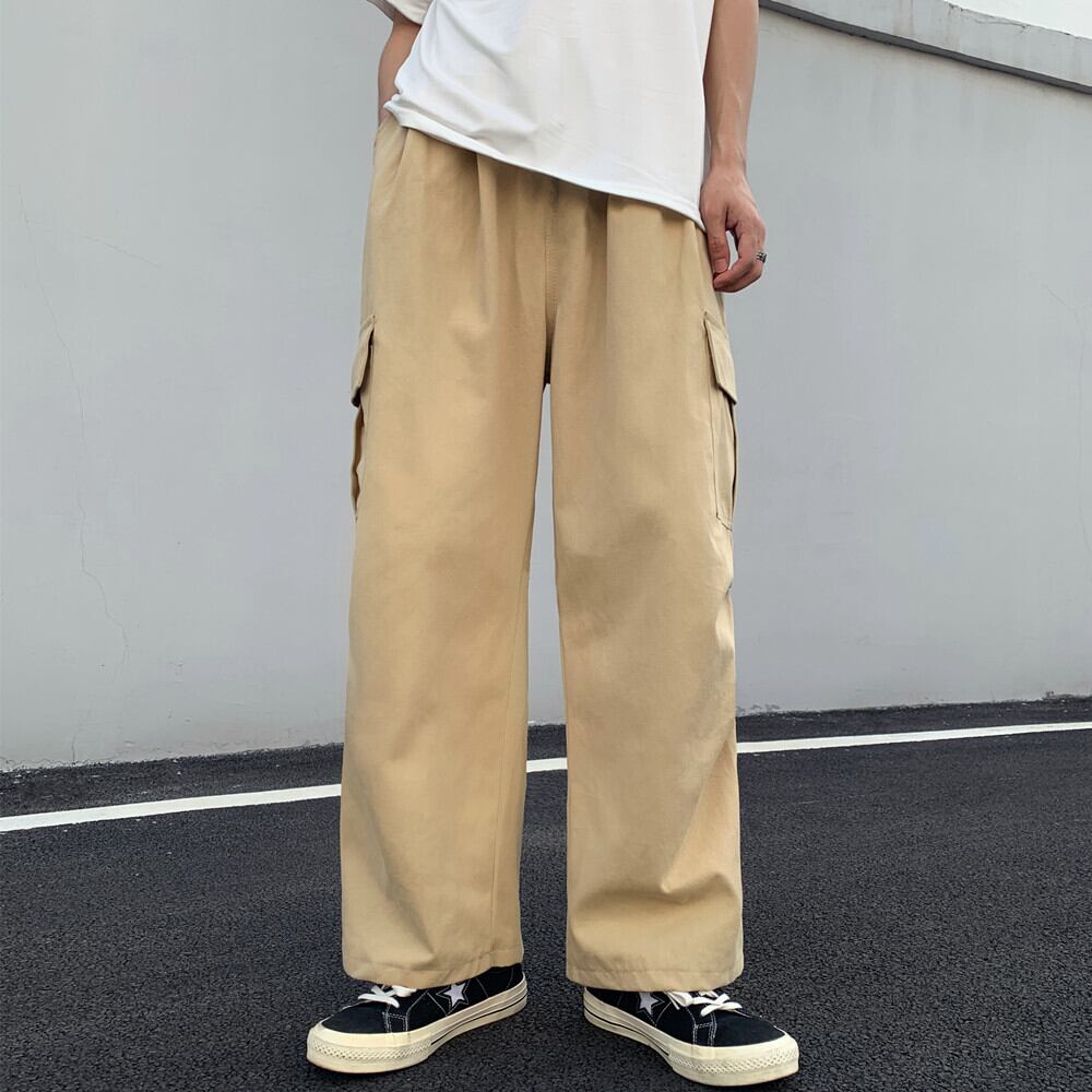 スタンダードソリッド カラーストレッチウェストカジュアルパンツ 秋物スタイル韓国ファッションルーズワイドレッグ レトロ エラスティック 伸縮 オータム ワイドパンツ ソリッドカラー ボーイズ ウエスト コーデ モノクロ Studio60974375814 | pLegLad Studios