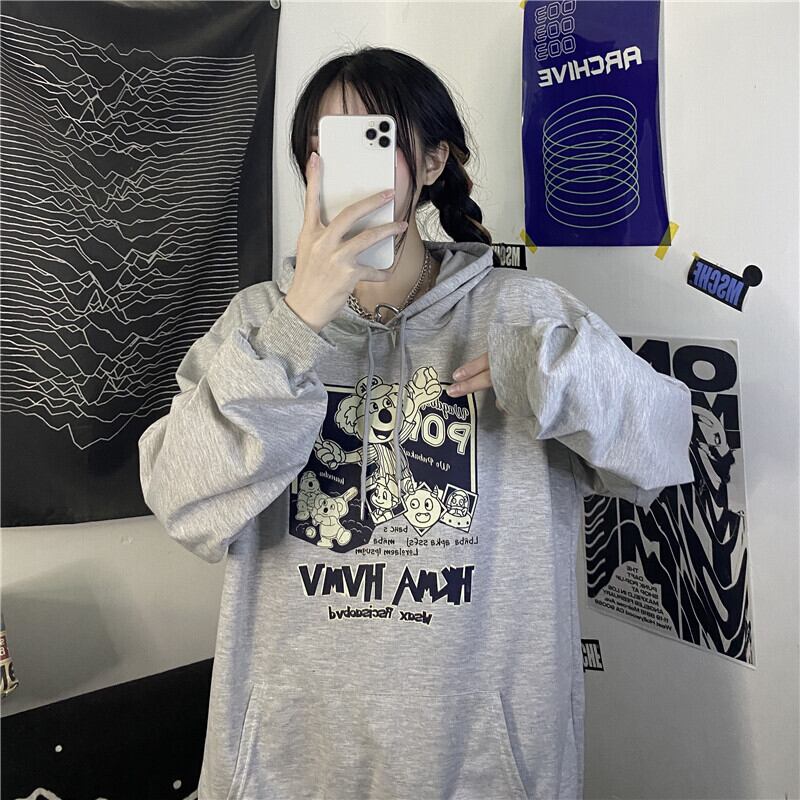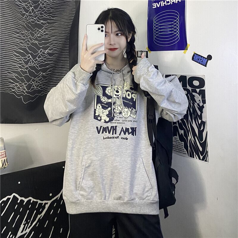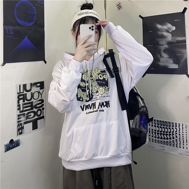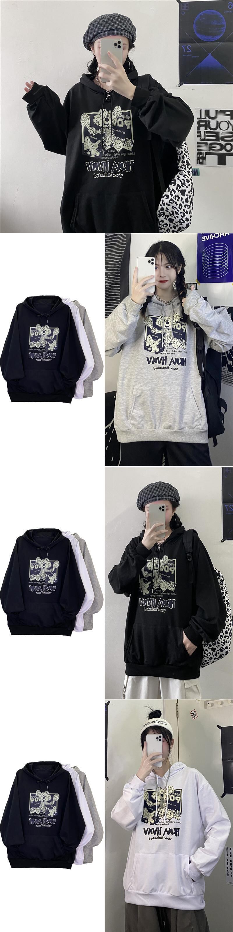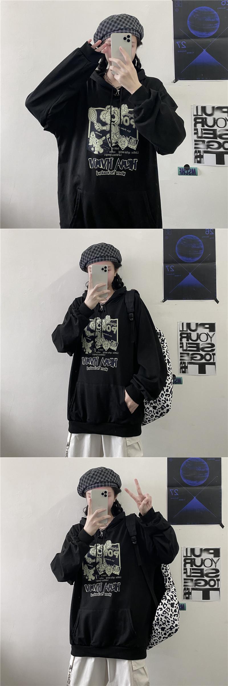 秋物韓国ファッションNEWスタイルプリント柄カジュアルルーズフードプルオーバー セーター ジャケット レディース ストリート 原宿 オータム Studios20246531301 | pLegLad Studios