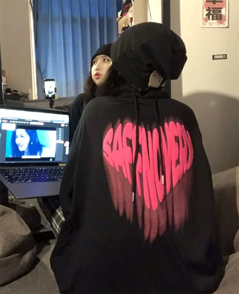 薄手セーター コート レディース秋物韓国ファッションNEWプリントフードトップス オータム ボーイズ スタイル コーデ モノクロ Studio27765895661 | pLegLad Studios