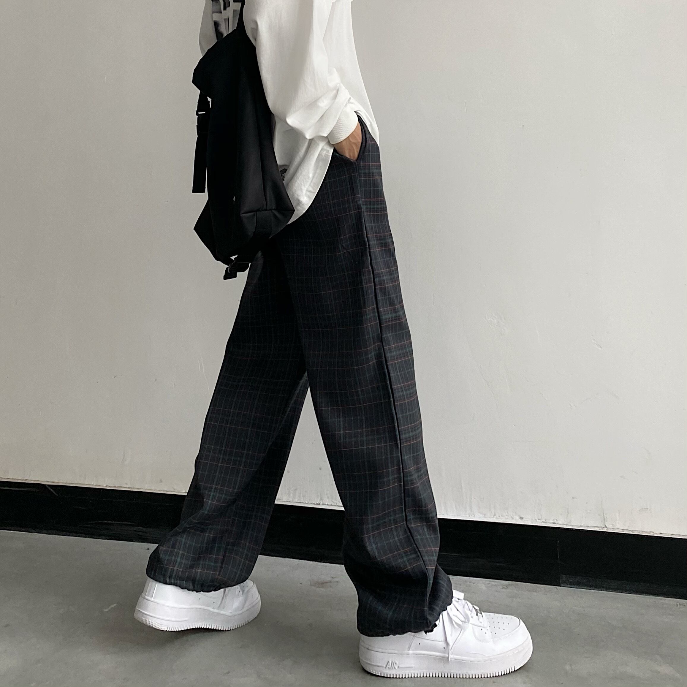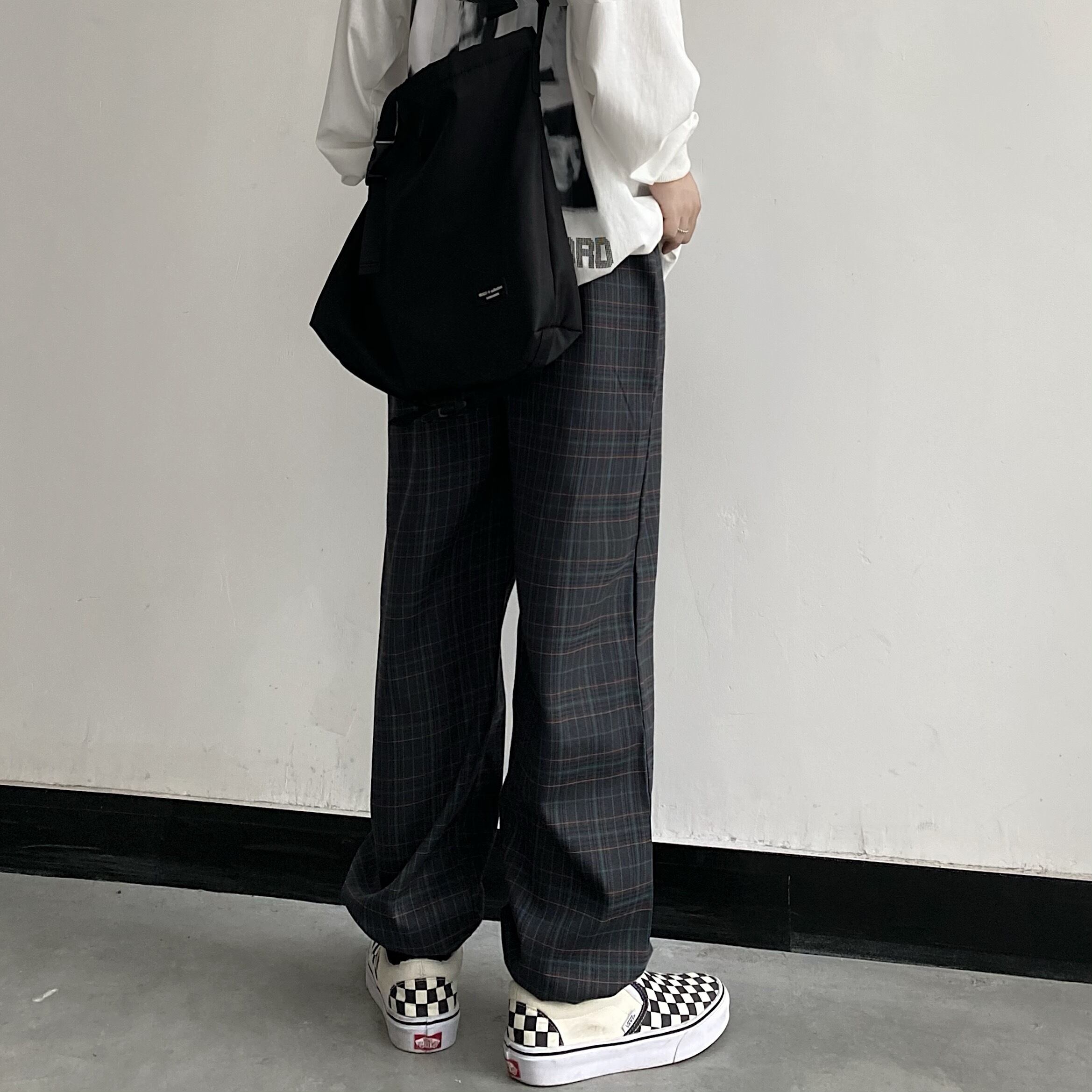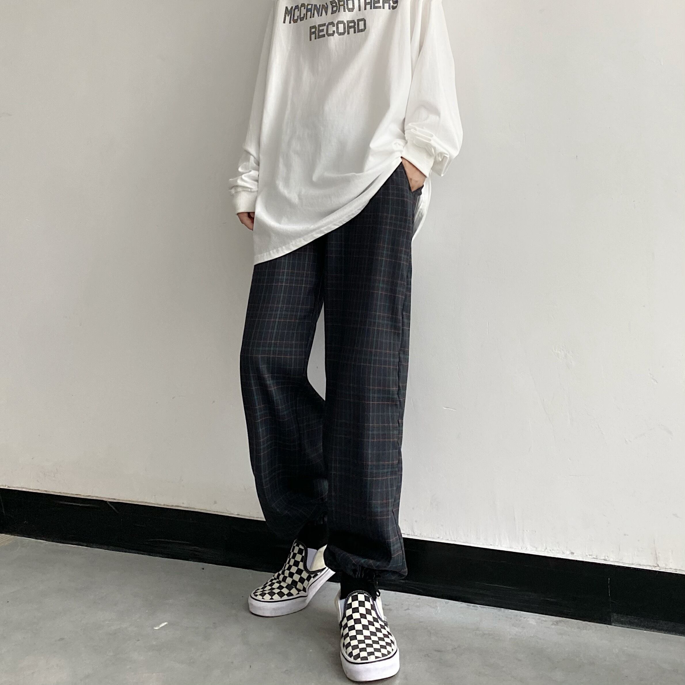 格子柄パンツ 秋物韓国ファッションNEWワイルドルーズウェスト ストリート オータム ワイドレッグ ワイドパンツ スタイル ウエスト Studios3788489643 | pLegLad Studios