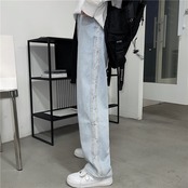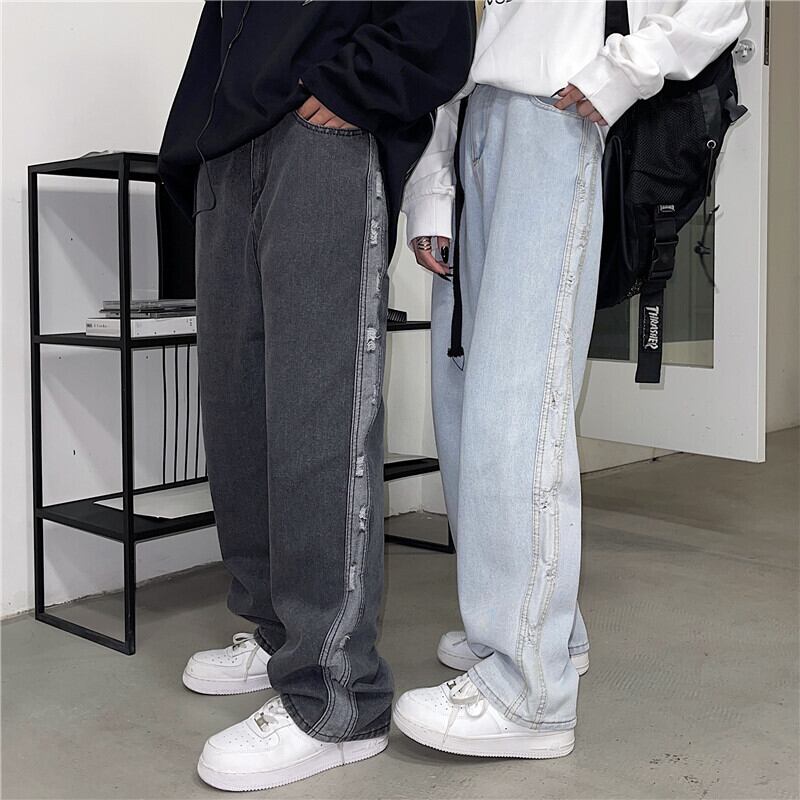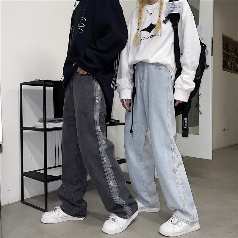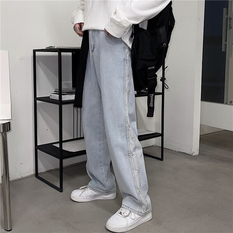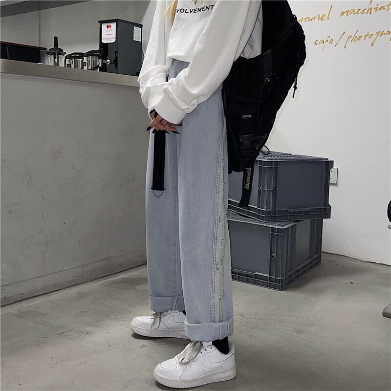 ジーンズ 秋物韓国ファッションスタイルワイドレッグパンツ ルーズハイウェストウェスト オータム ワイドパンツ ステッチ ウエスト コーデ モノクロ Studio29360766850 | pLegLad Studios
