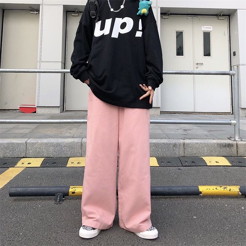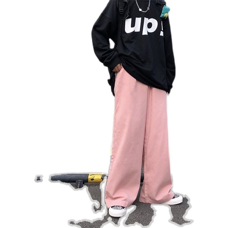 カジュアルパンツ 秋物韓国ファッションルーズワイドレッグハイウェストウェストスリム ピンク オータム ワイドパンツ スタイル ウエスト コーデ モノクロ Studio7137817842 | pLegLad Studios