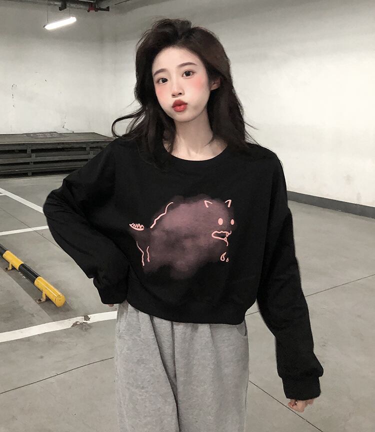 色:白い雲の落書きの短いセーター,黒い雲の落書きの短いセーター