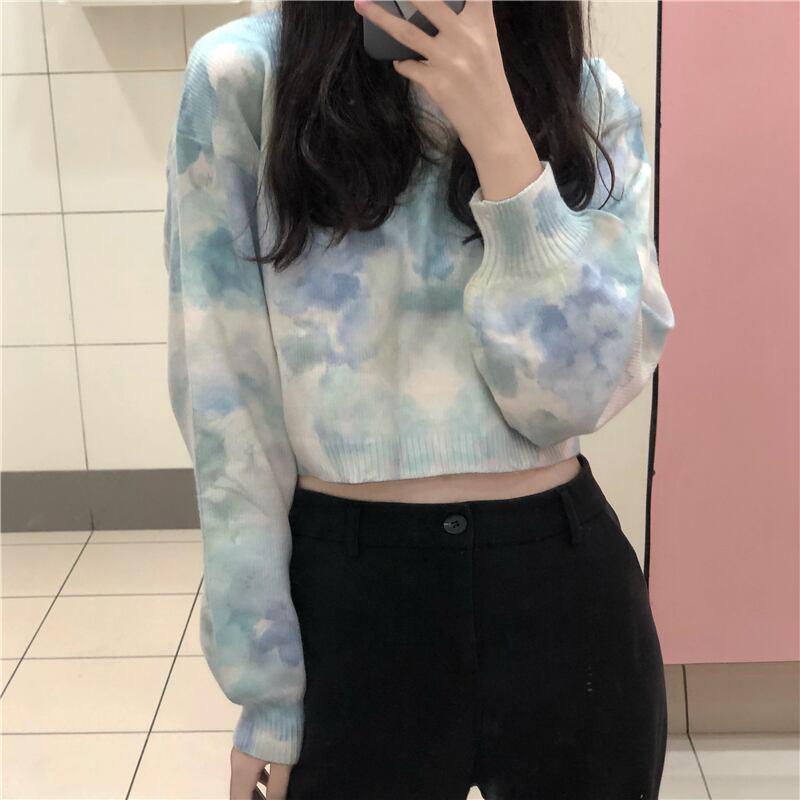 ショートセーター レディース秋物韓国ファッションNEWスリムクロップドプルオーバー トップス ロング オータム スタイル 長袖 コーデ モノクロ Studio35604330767 | pLegLad Studios