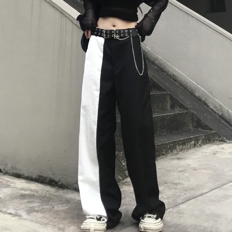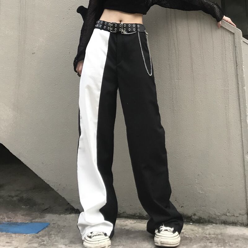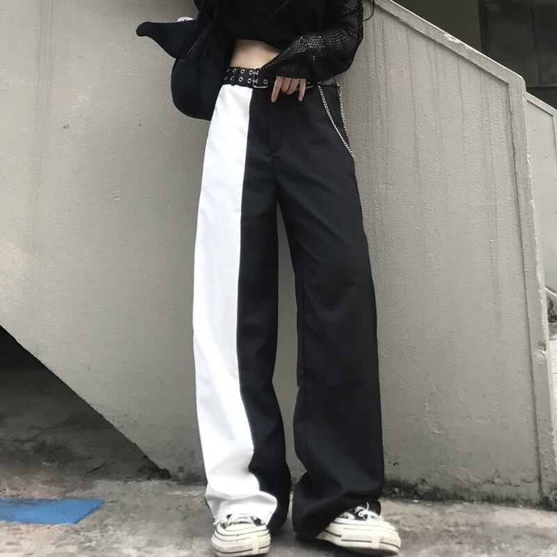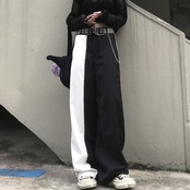 カジュアルパンツ 秋物韓国ファッションNEWスタンダードブラックホワイト レトロ オータム ステッチ スタイル コーデ モノクロ Studio52214418137