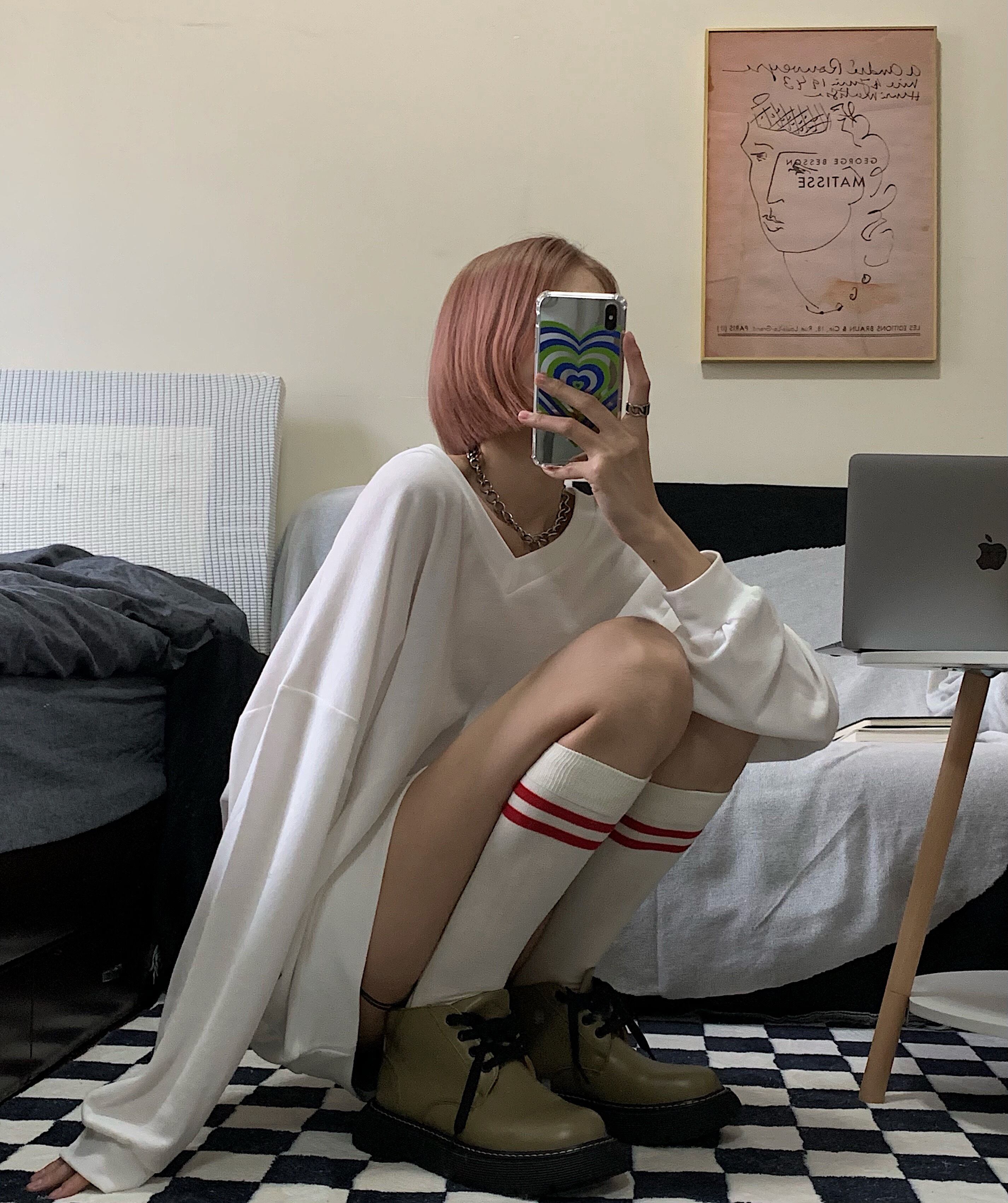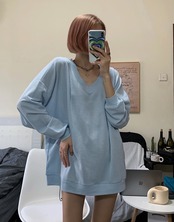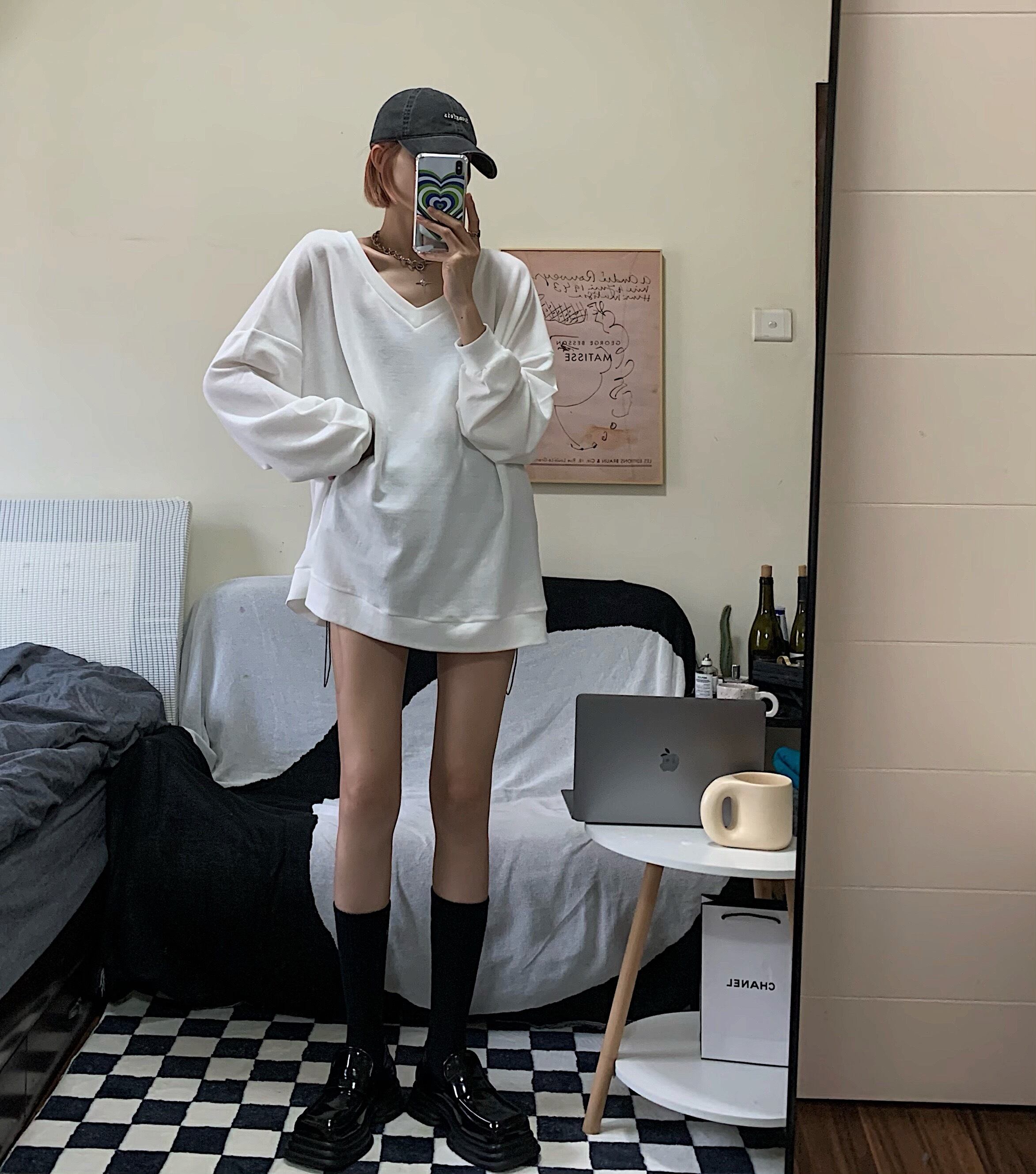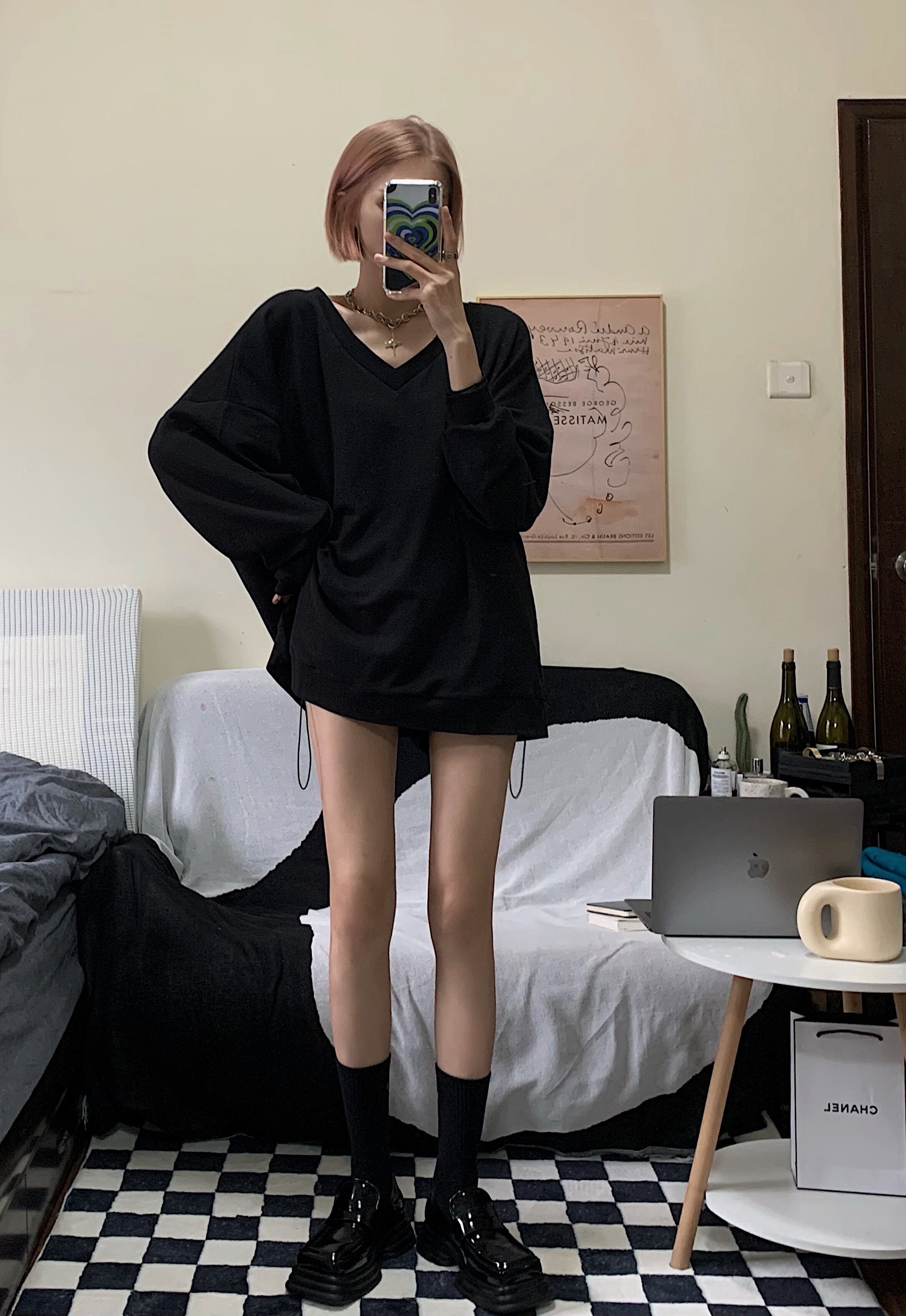 ルーズVネックセーター レディース秋物韓国ファッションNEWソリッド カラースリムカジュアルトップス ロング オータム ソリッドカラー スタイル 長袖 コーデ モノクロ Studio30465843669 | pLegLad Studios