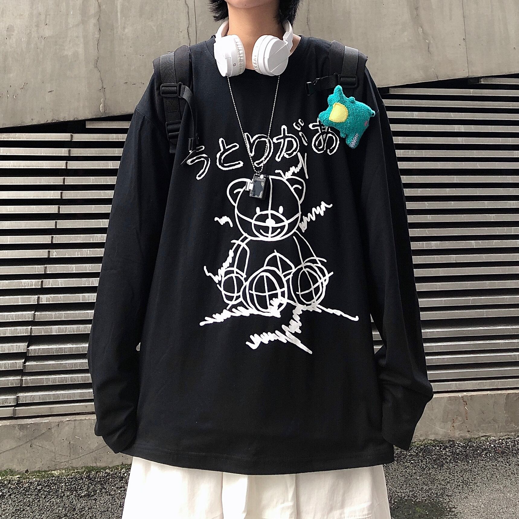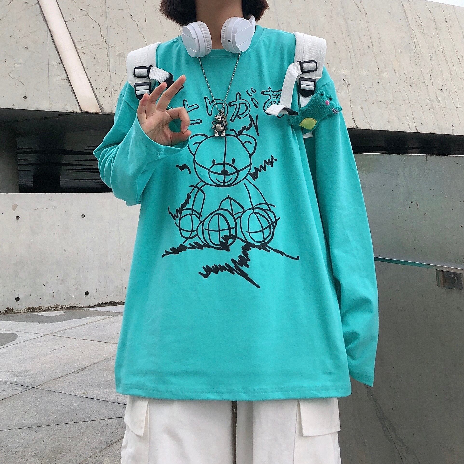 秋物韓国ファッションNEWスタイルプリント柄カジュアルルーズラウンドネックTシャツレディース ロング ストリート 原宿 オータム Oネック 長袖 Studios32920085263 | pLegLad Studios