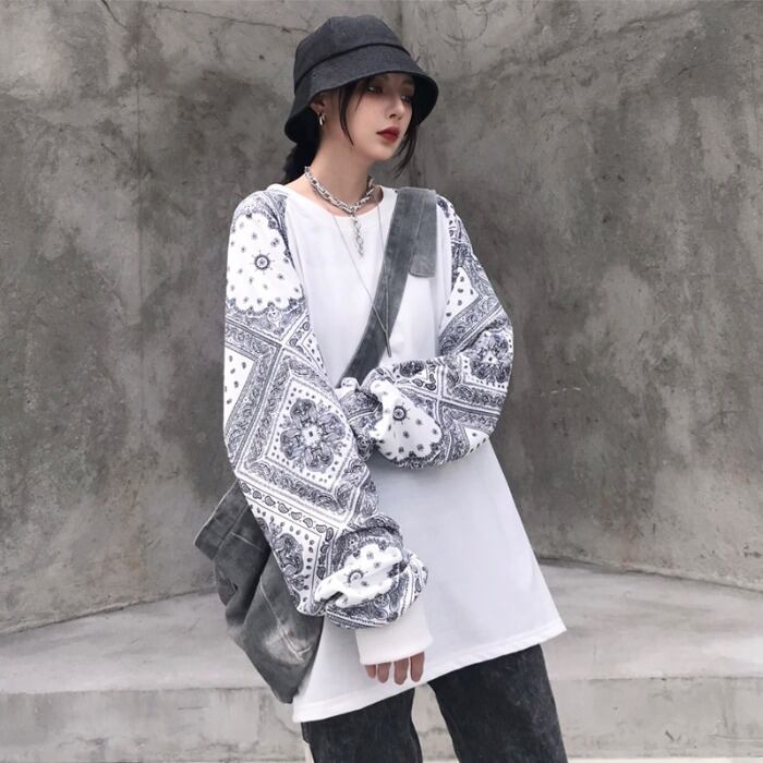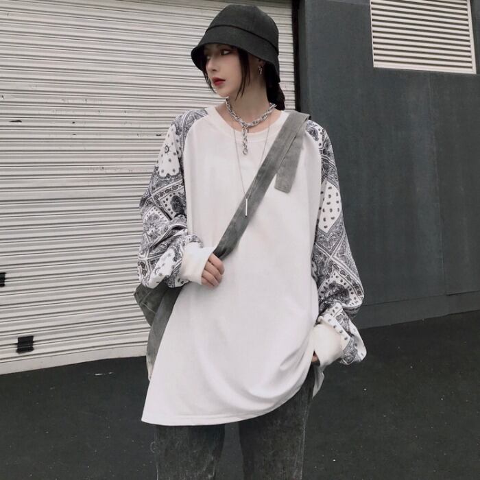 秋物韓国ファッションNEWスタイルFlowerデザイン スリーブルーズラウンドネックセーター レディース 原宿 オータム Oネック フラワーデザイン ステッチ Studios17252928290 | pLegLad Studios