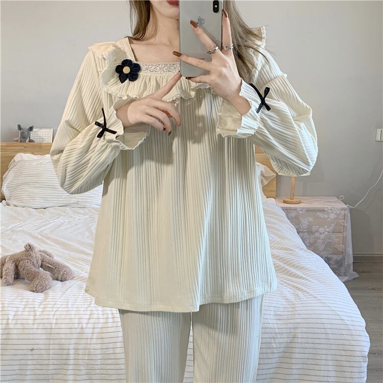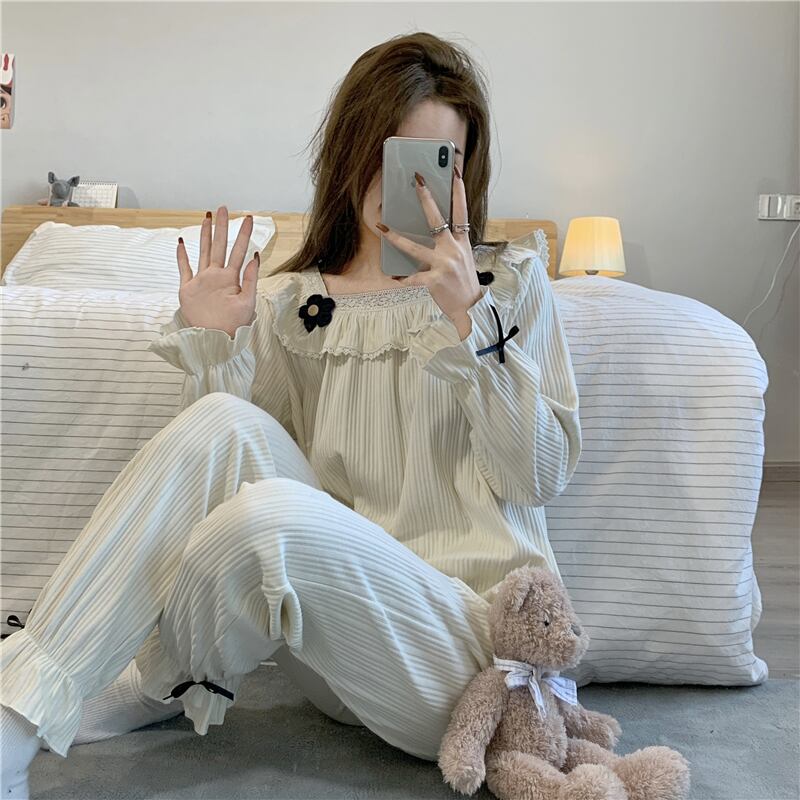 秋物韓国ファッションスタイルFlowerデザイン ルーズカジュアルレディース ロング リボン オータム フラワーデザイン スクウェア 長袖 Studios88721669342 | pLegLad Studios