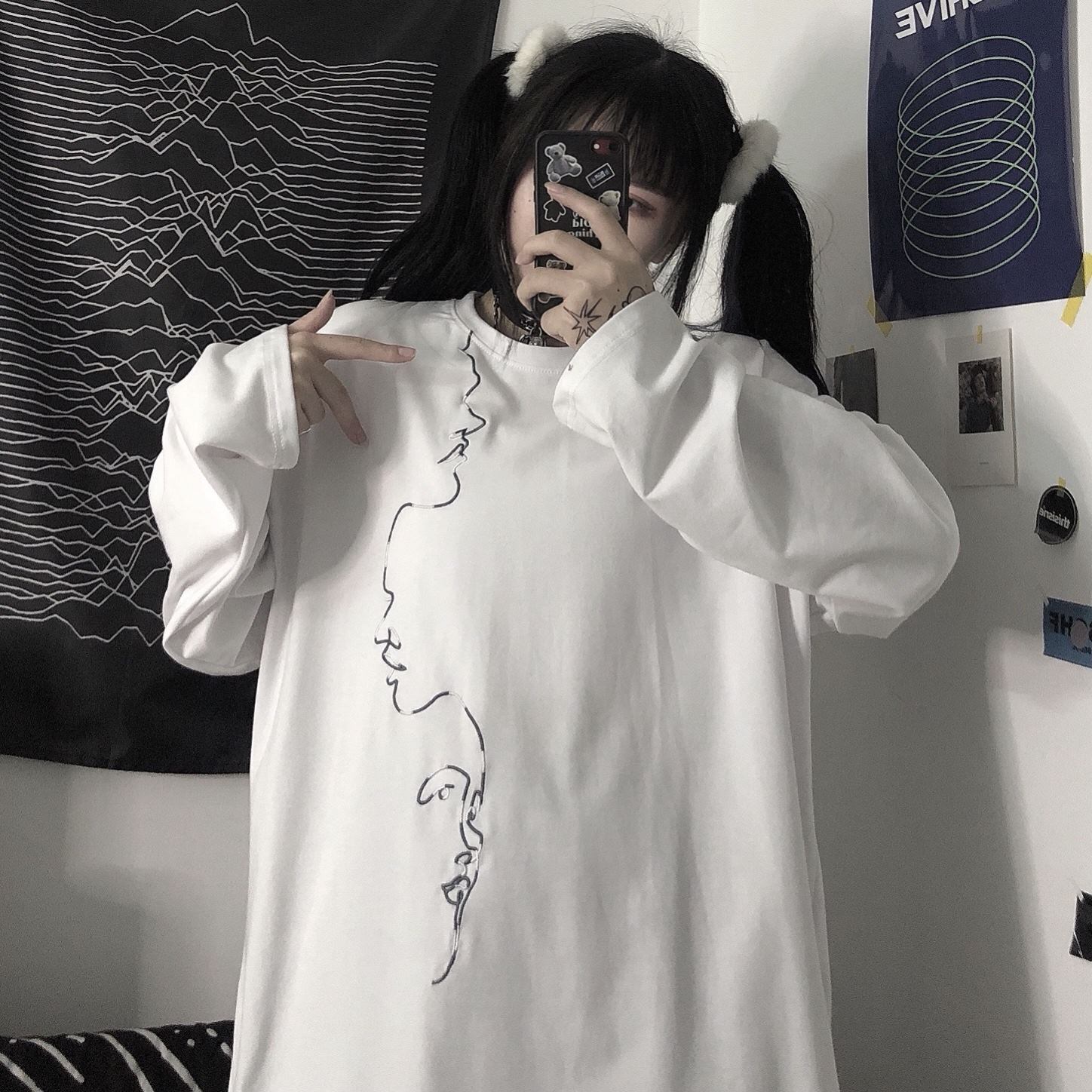 秋物韓国ファッションNEWスタイル刺繍ルーズラウンドネックTシャツレディース ロング ストリート 原宿 オータム Oネック 長袖 Studios75125747497 | pLegLad Studios