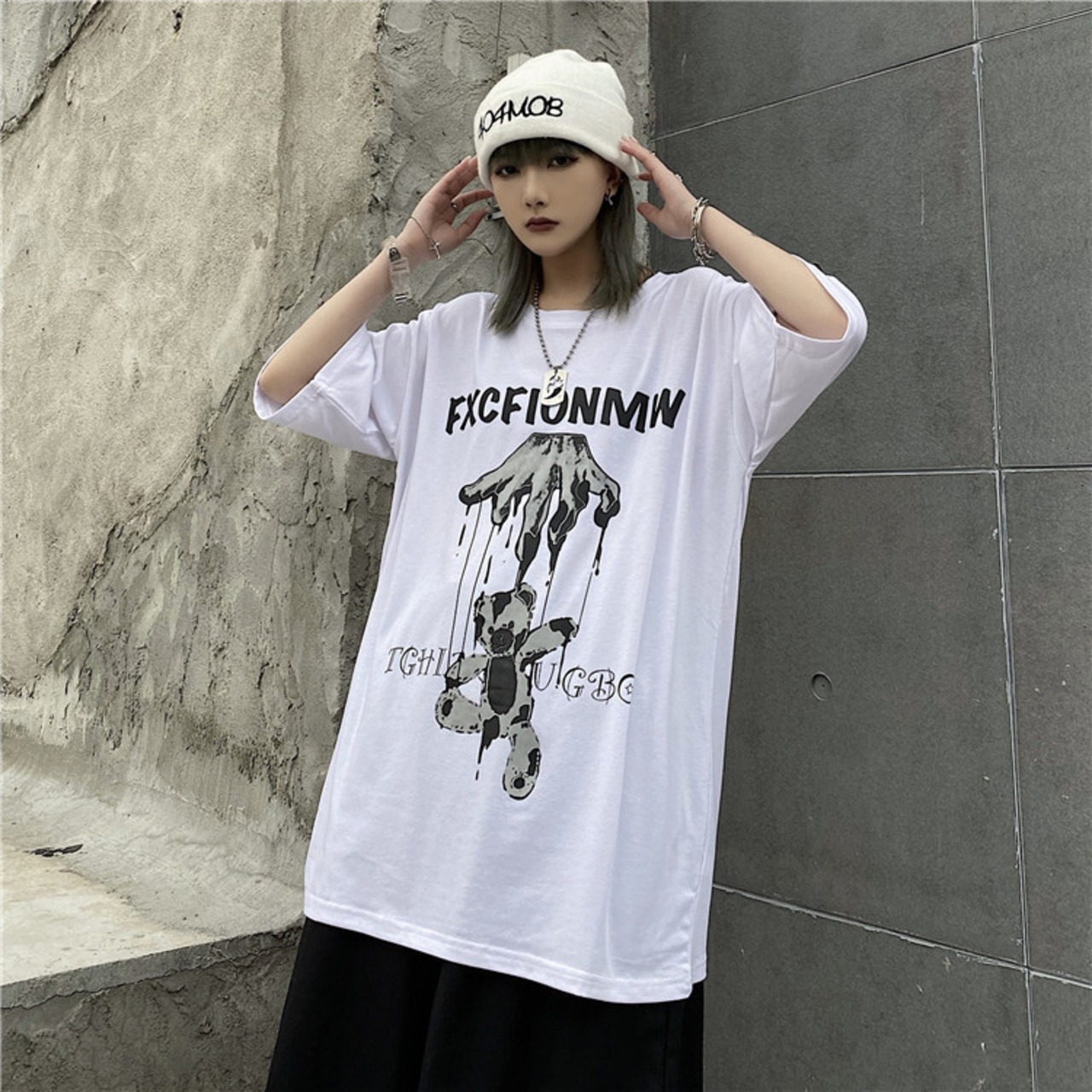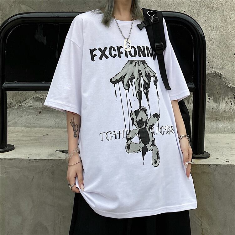 Tシャツレディース夏服韓国ファッションNEWスタンダードプリントルーズトップス レトロ ストリート 夏物 スタイル コーデ モノクロ Studio10969282369 | pLegLad Studios